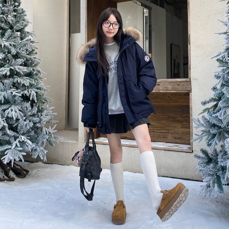 首页> 女装> 学院风羽绒服女2025年冬季新款短款加厚小个子工装派克服棉服外套