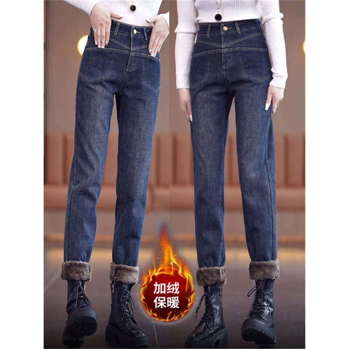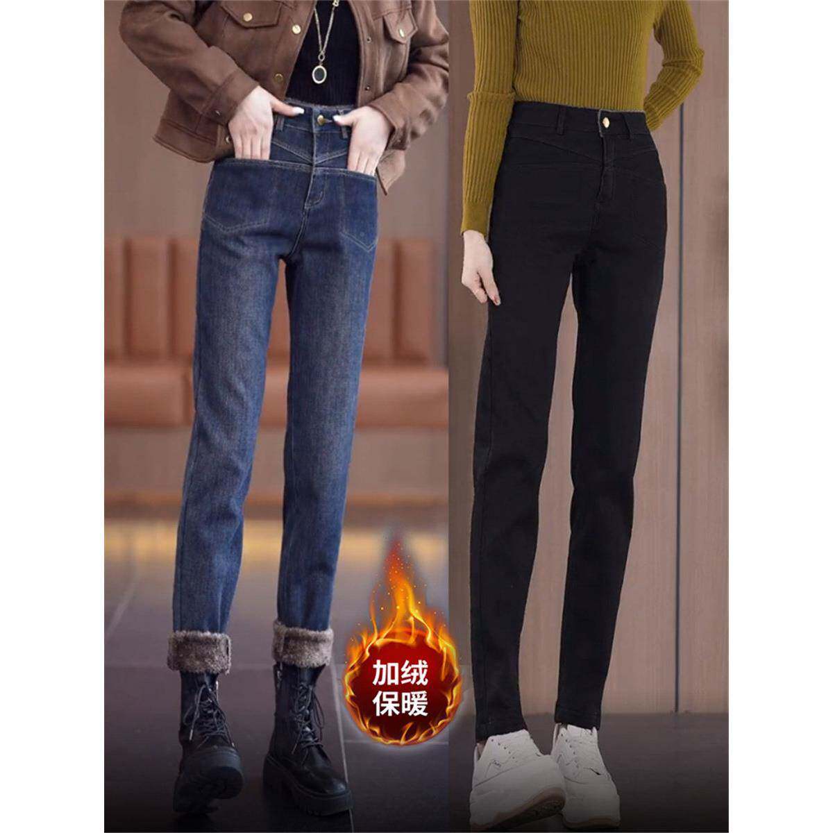 绒加厚士牛仔裤女保暖2024秋冬季款小个子弹力直筒小脚新烟115管