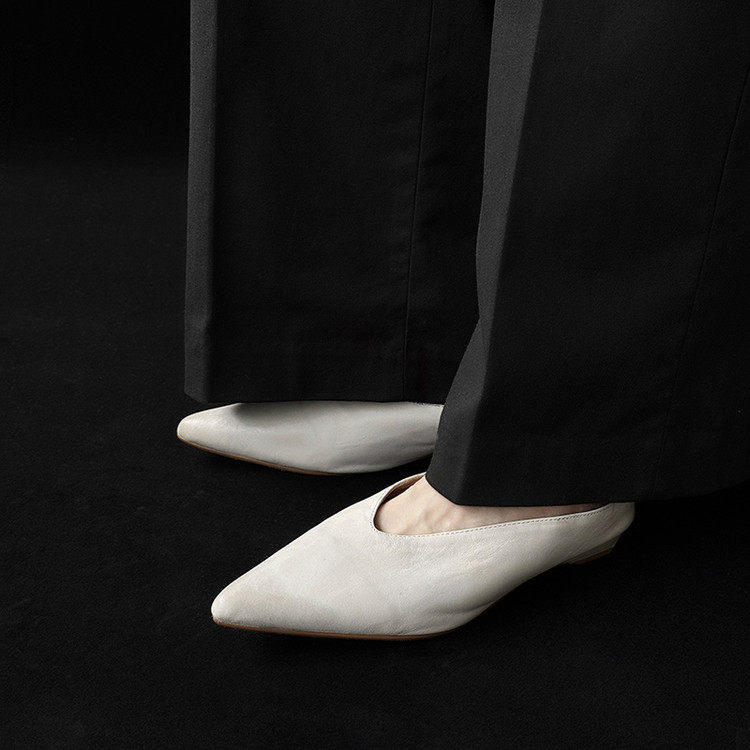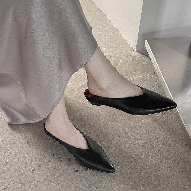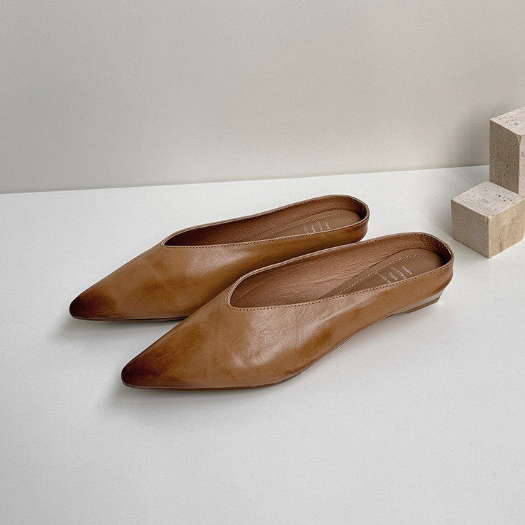 复古质感牛皮低跟包头拖鞋女外穿2025夏季新款优雅尖头粗跟穆勒鞋