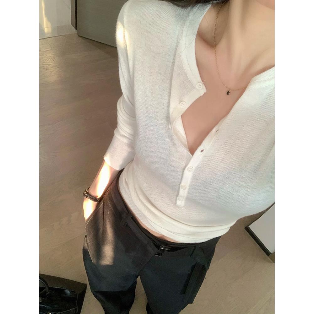 老钱高级感V领针织打底衫女2025秋季修身内搭羊毛衫复古毛衣上衣