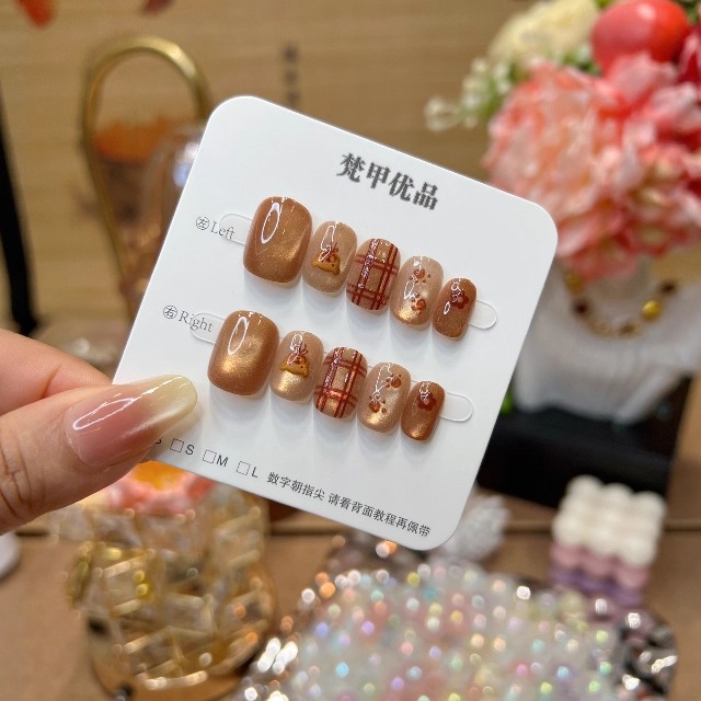 梵甲优品C434巧克力小熊猫眼可拆卸穿戴美甲 10片装