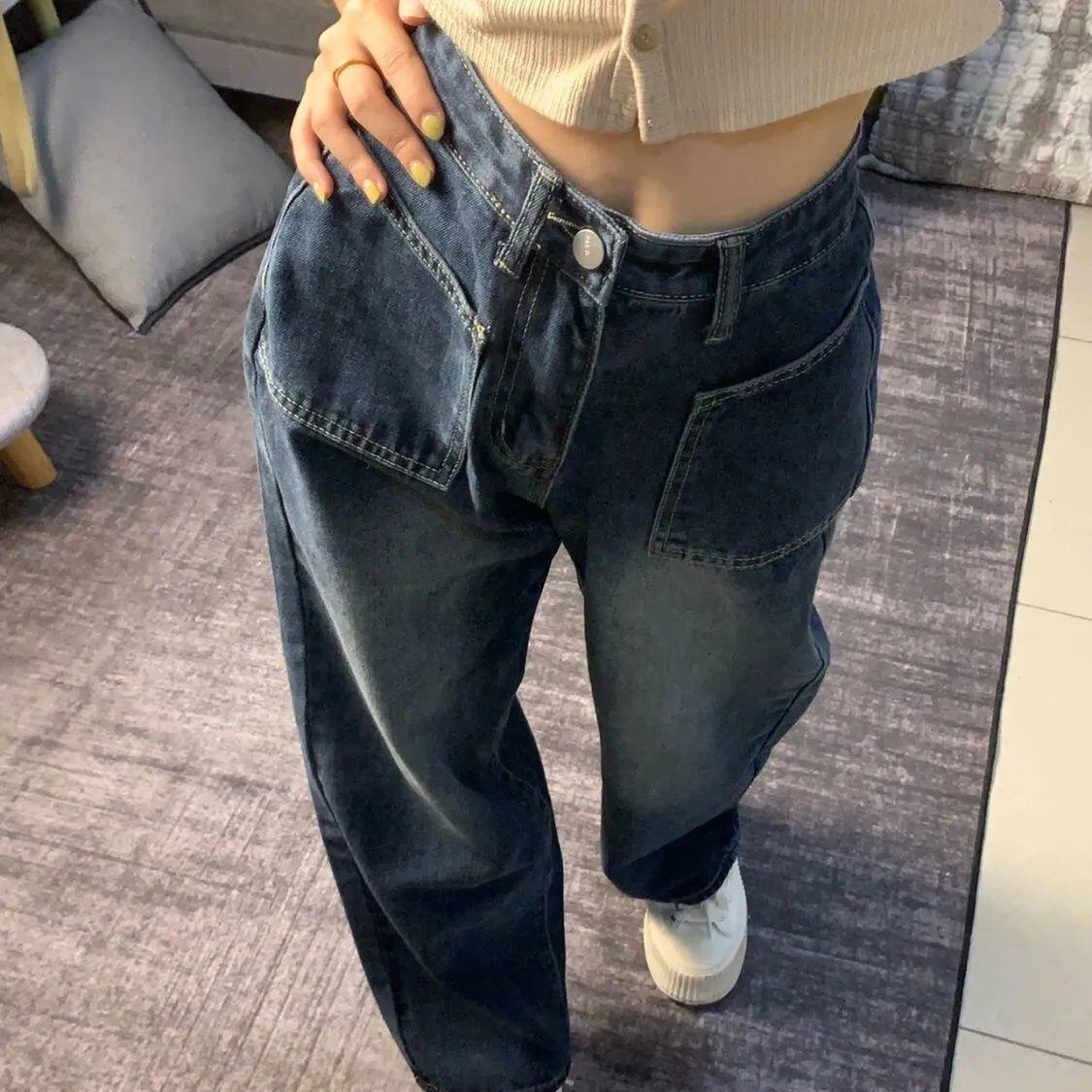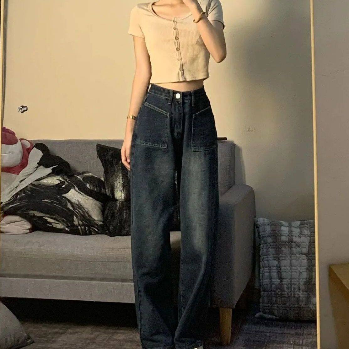 阔腿牛仔裤女2025秋季新款蓝色高腰宽松直筒显高显瘦长裤拖地裤潮