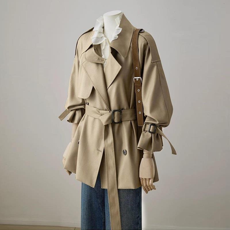 英伦风卡其色短款风衣女2025新款春秋季收腰小个子高级感爆款外套