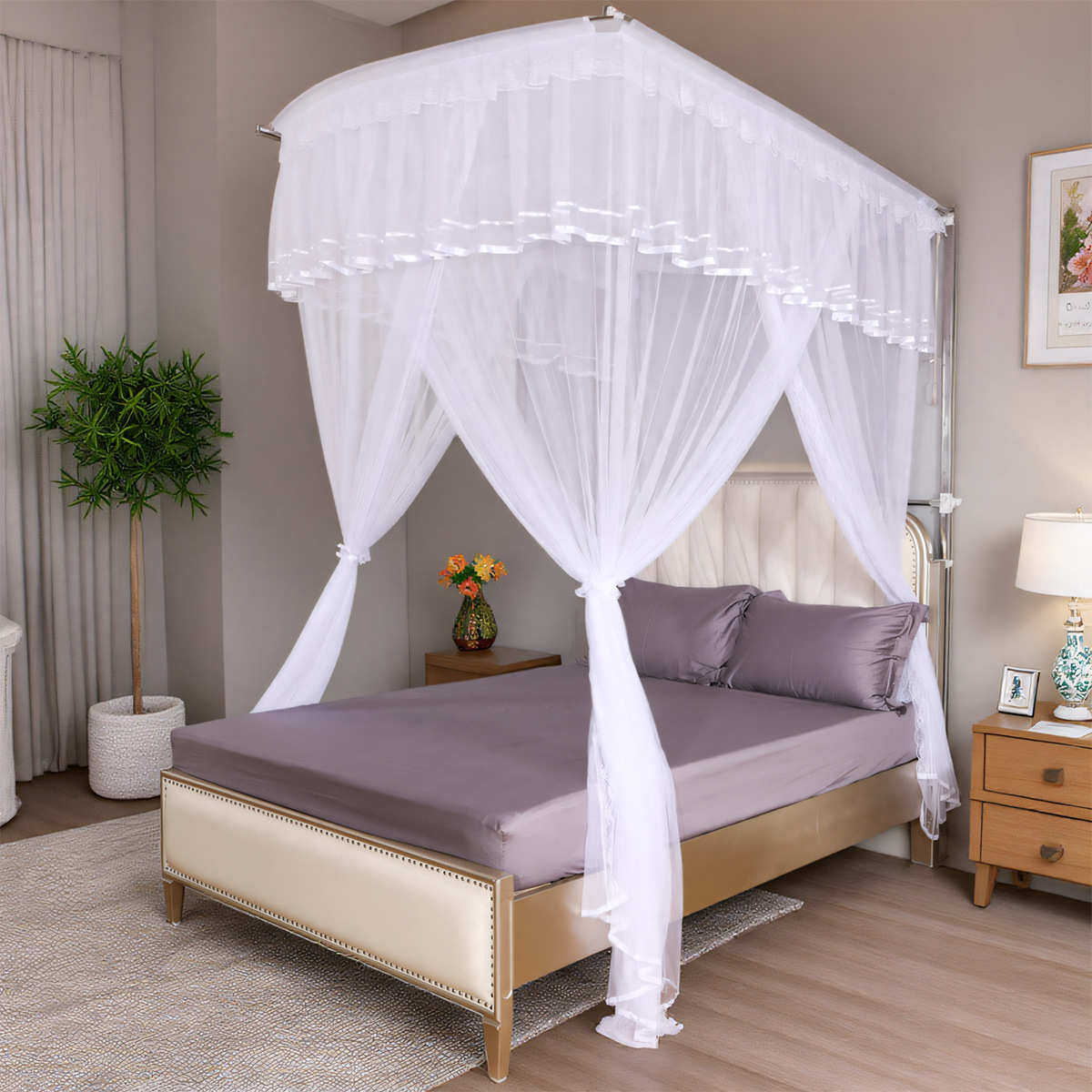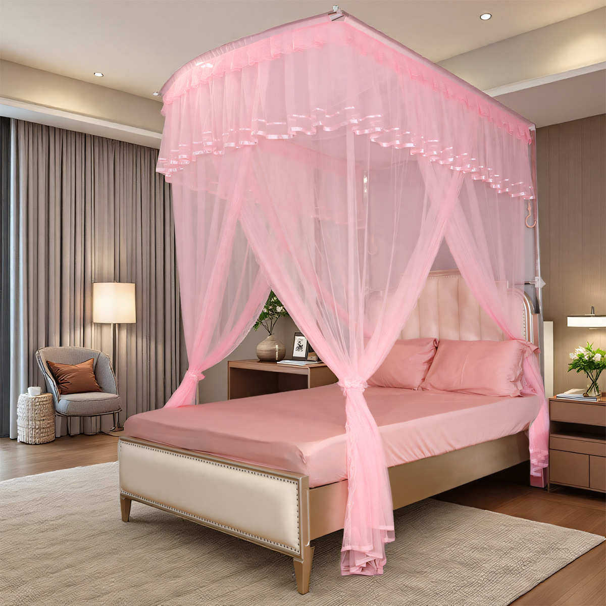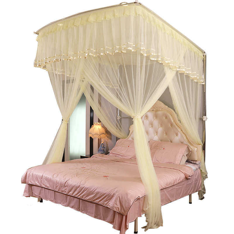 厂家批发定制轻奢U型导轨蚊帐三开门家用蕾丝1米8床幔导轨蚊帐