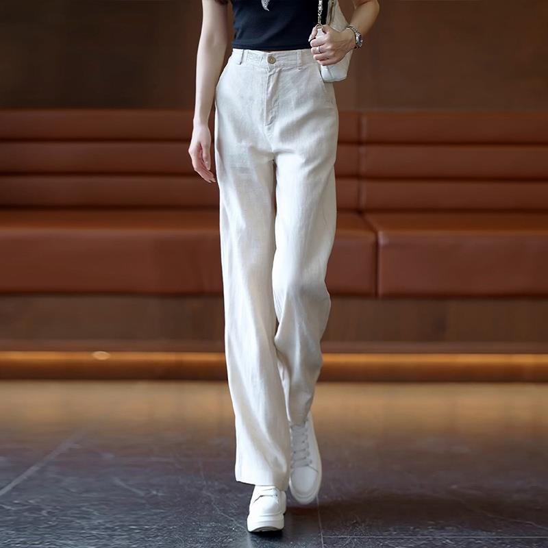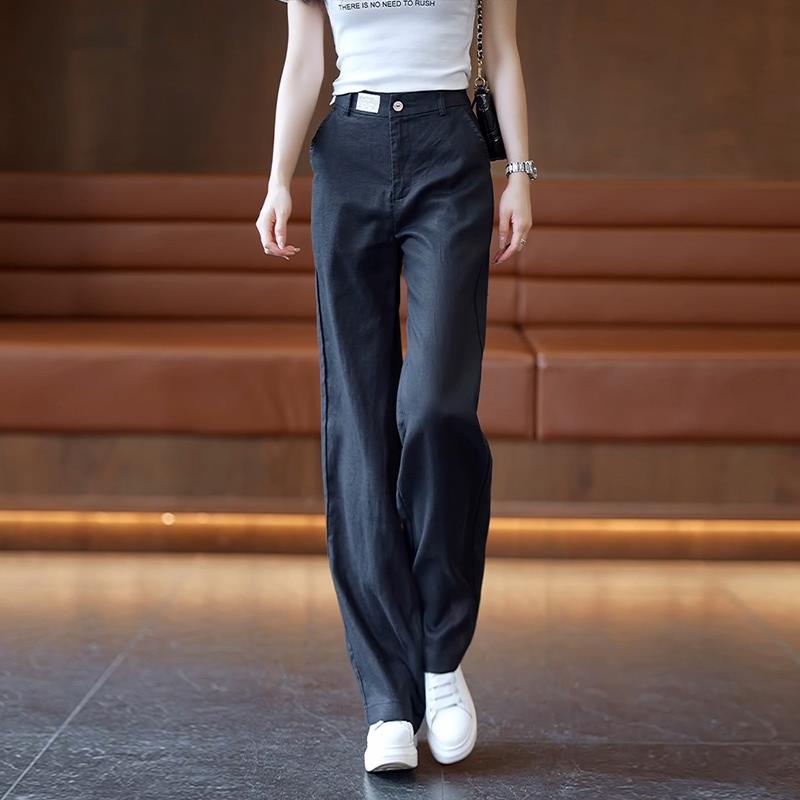 亚麻窄版阔腿裤女2025新款夏薄款休闲裤高腰垂感抗皱天丝直筒裤子