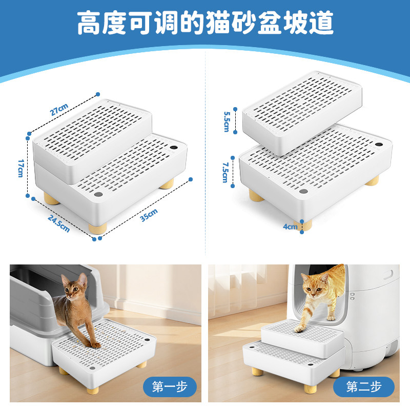 猫控砂踏板防带出猫厕所控砂台防外溅双层加高楼梯踏板控砂台阶