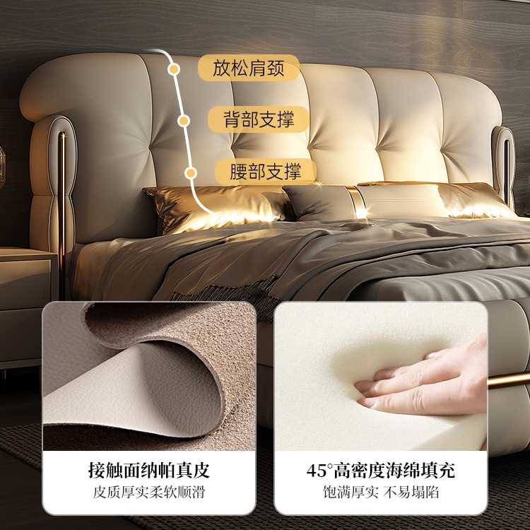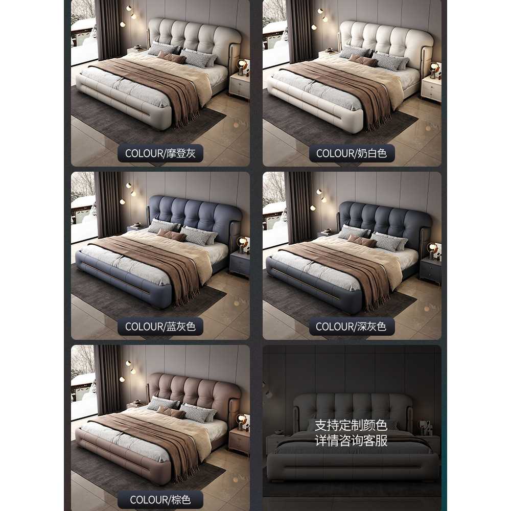 意式轻奢皮床真皮床现代简约双人床主卧1.8米2米极简软包大床婚床