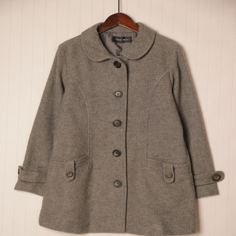 秋冬Vintage复古英伦风拼接色毛呢子大衣 D73