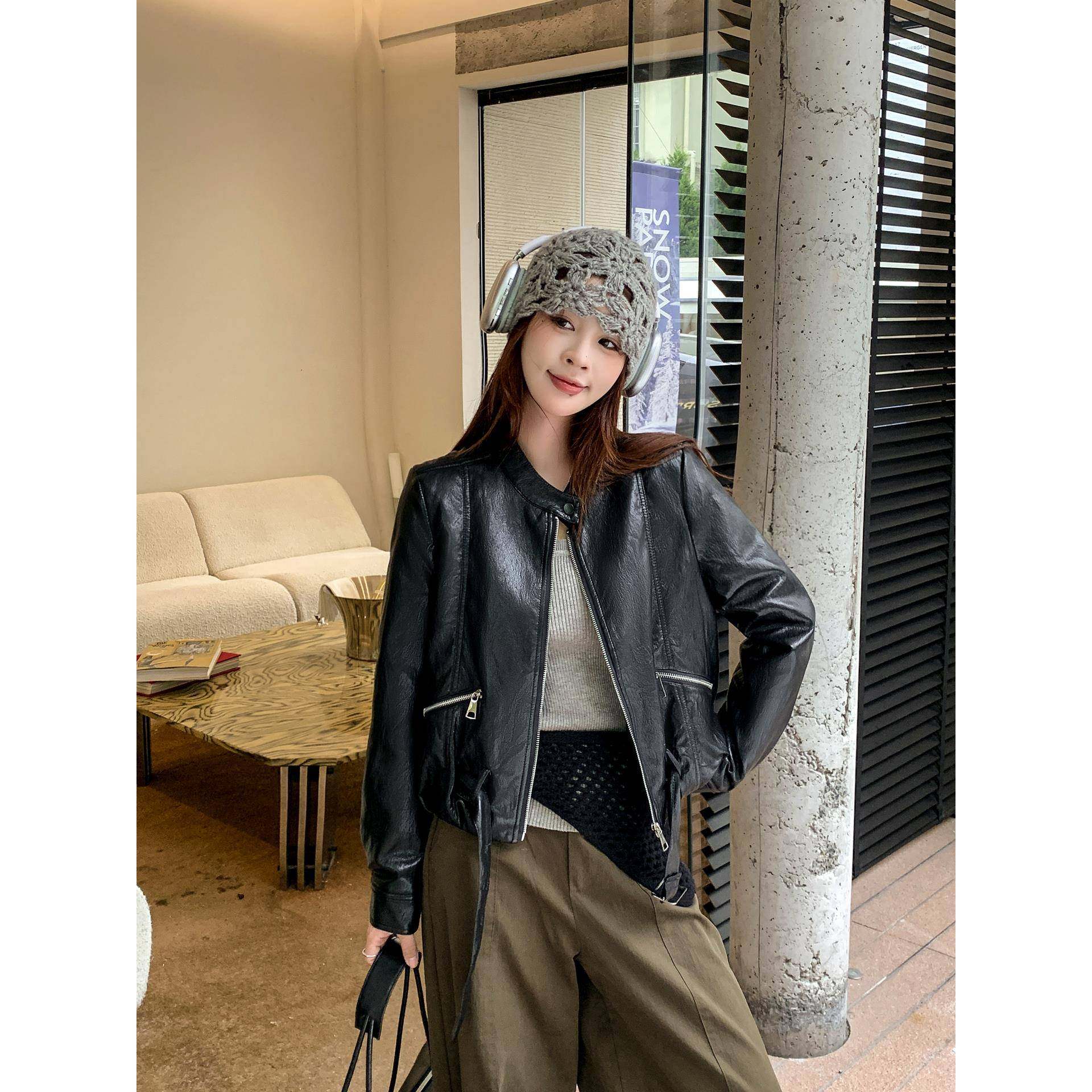 高级感短款羽绒服皮衣外套女冬季新款保暖酷飒小个子机车PU皮夹克