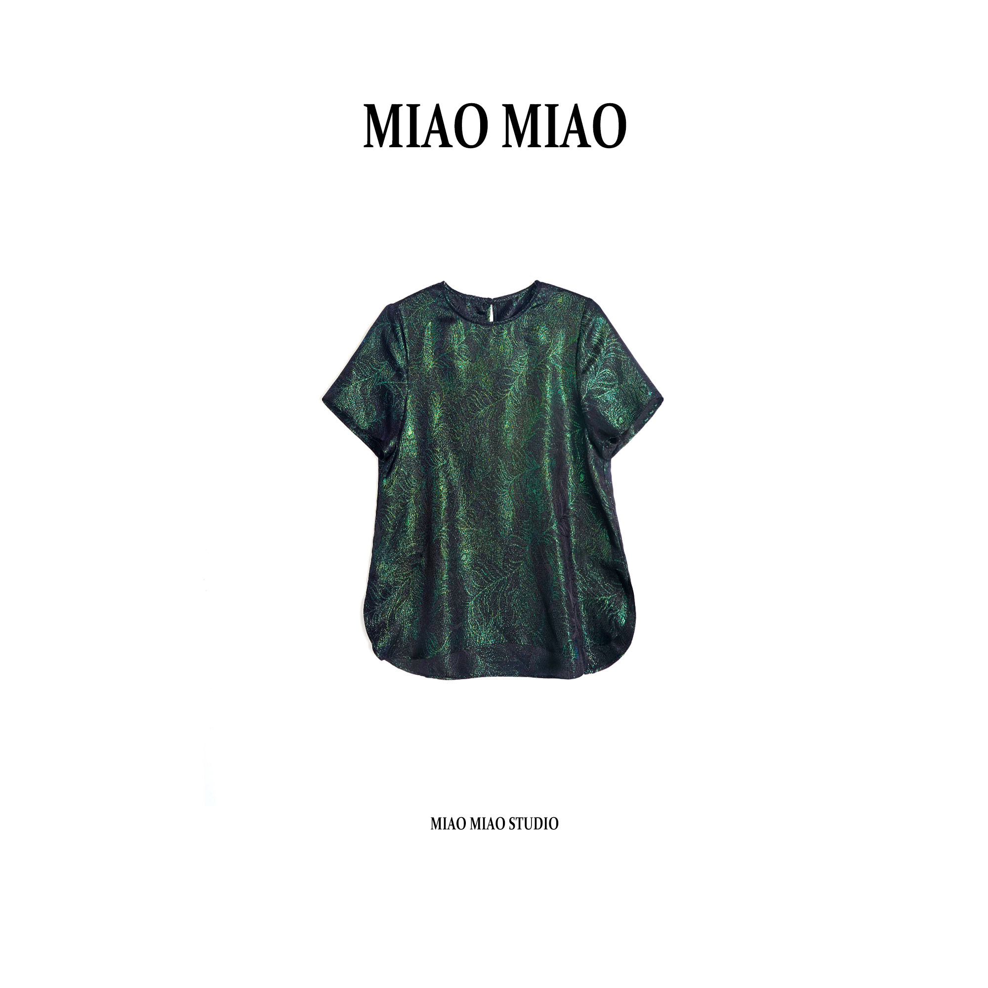 【澜姿】徐淼淼夏款'丹青妙笔'六通孔雀翎非遗金通正绢上衣BM2397