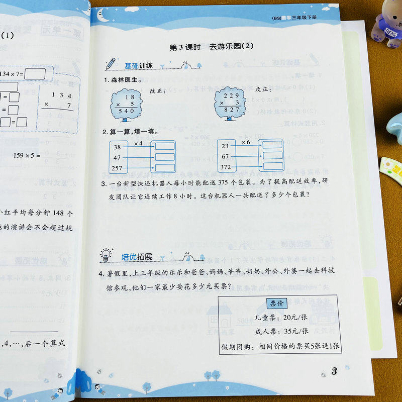 2026新版北师大版三年级下册数学练习册单元测试卷BS版同步训练数学随堂练习册课时作业重点知识巩固训练3年级下学期黄冈课课练