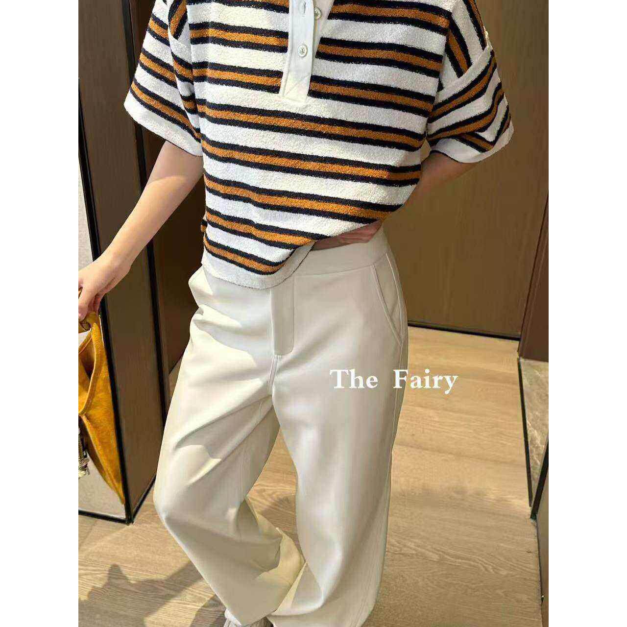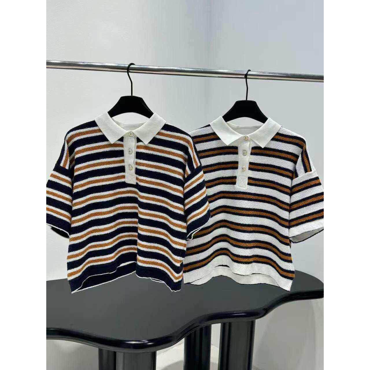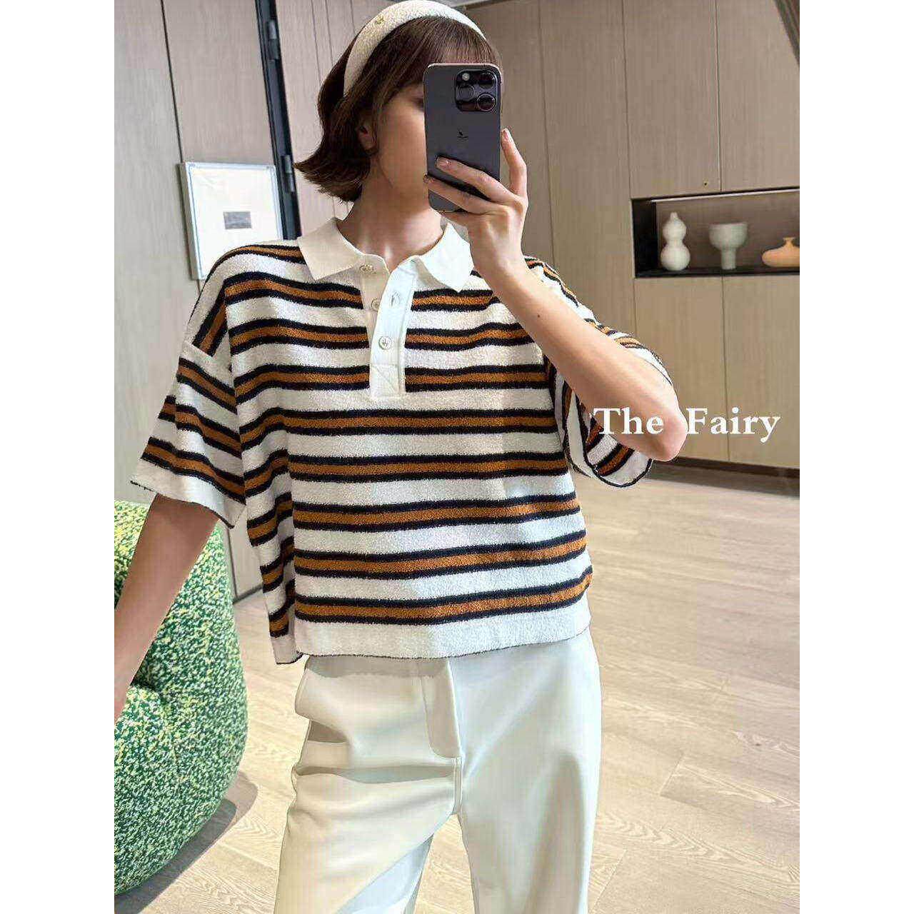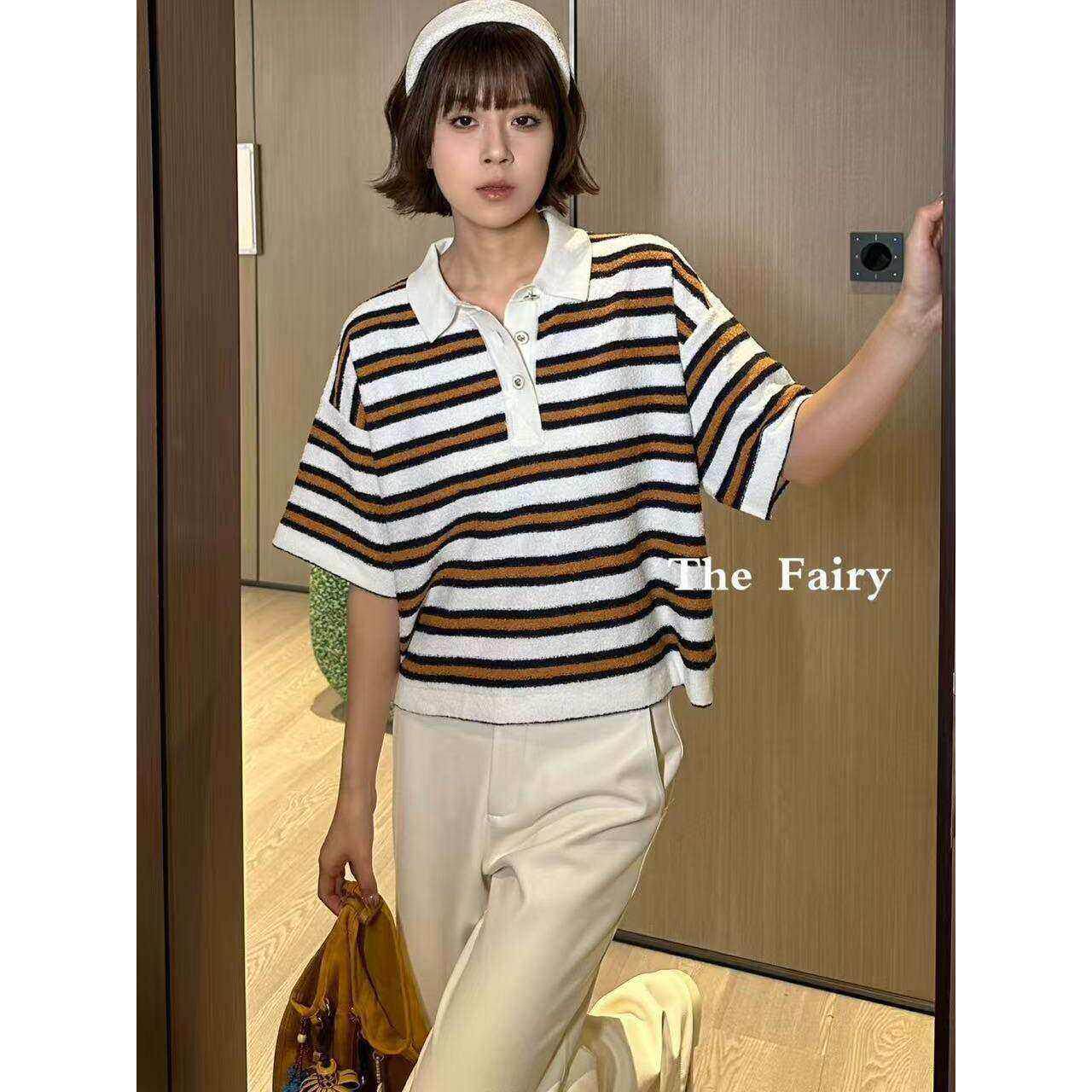 好漂亮翻领条纹针织半袖T恤女2026年早春新款短袖上衣宽松 时尚潮