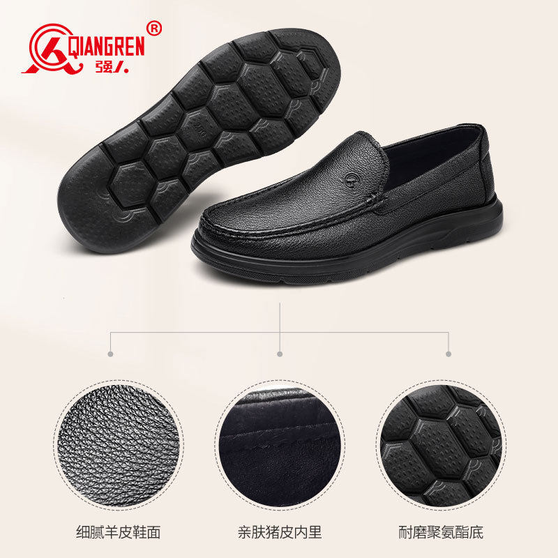 3515强人品牌正品皮鞋超轻软底驾车鞋一脚蹬皮鞋休闲羊皮皮鞋男士