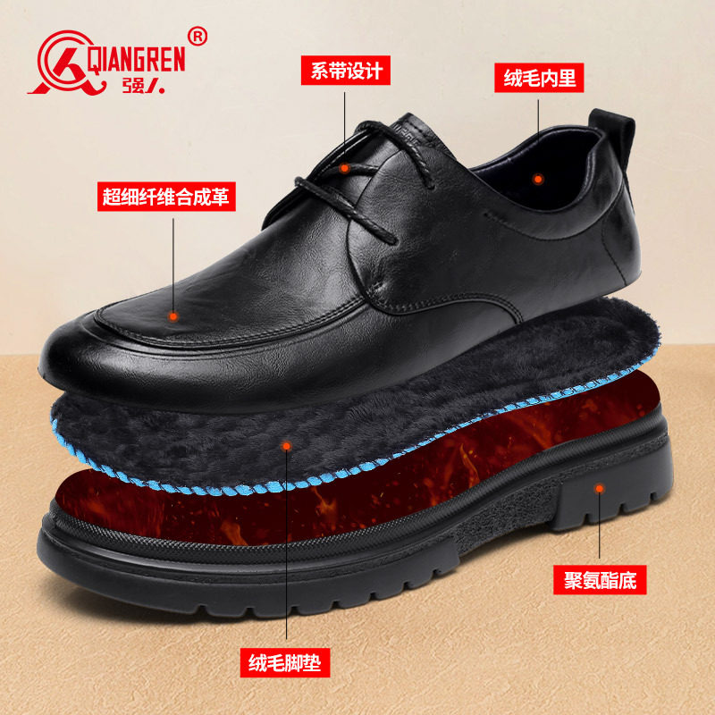 3515强人品牌正品加绒皮鞋男冬季保暖二棉鞋子商务休闲鞋冬季新款