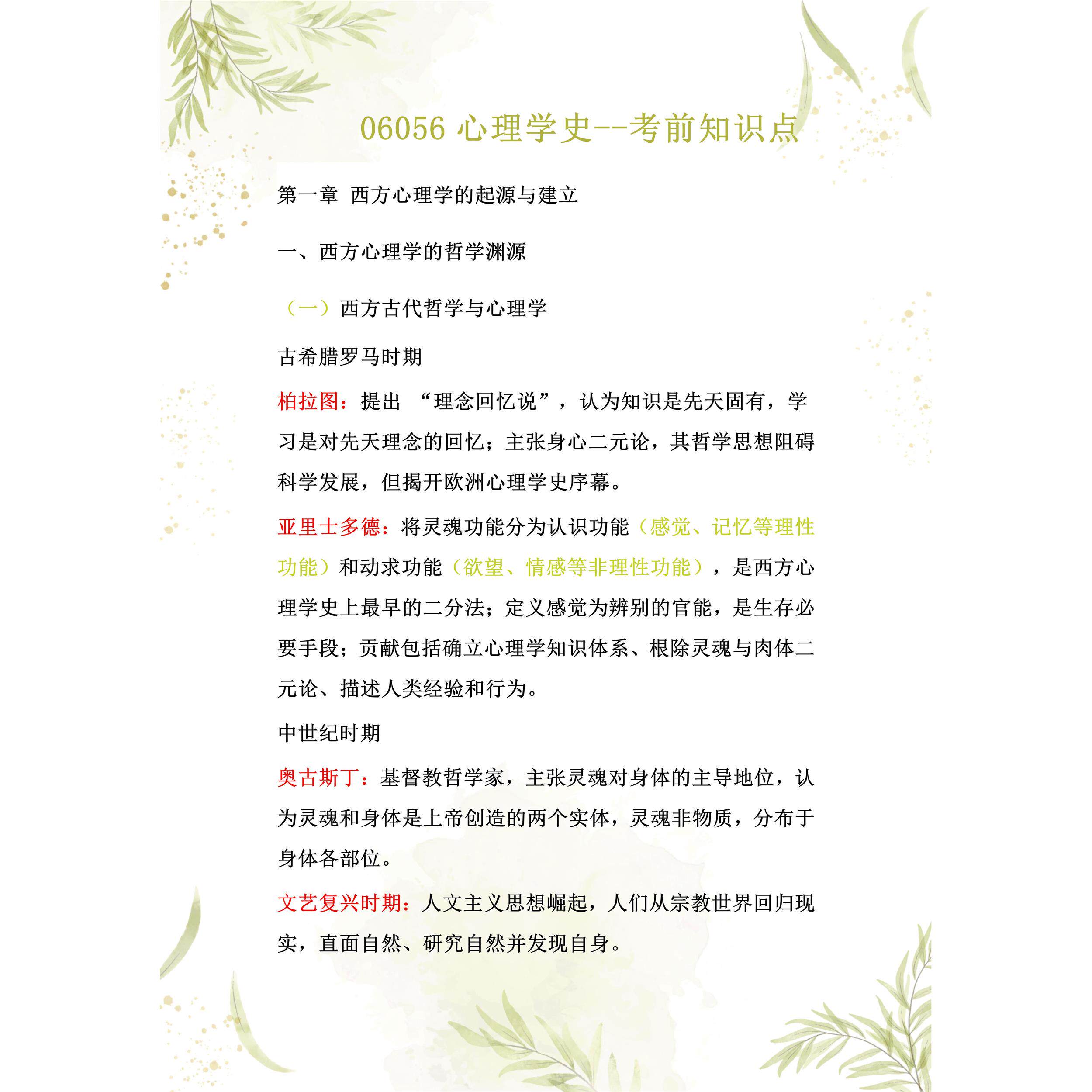 考点重点 06056心理学史 考纲讲解自考笔记 资料 自考复习过关思维导图 精讲视频网课 考前押题资料
