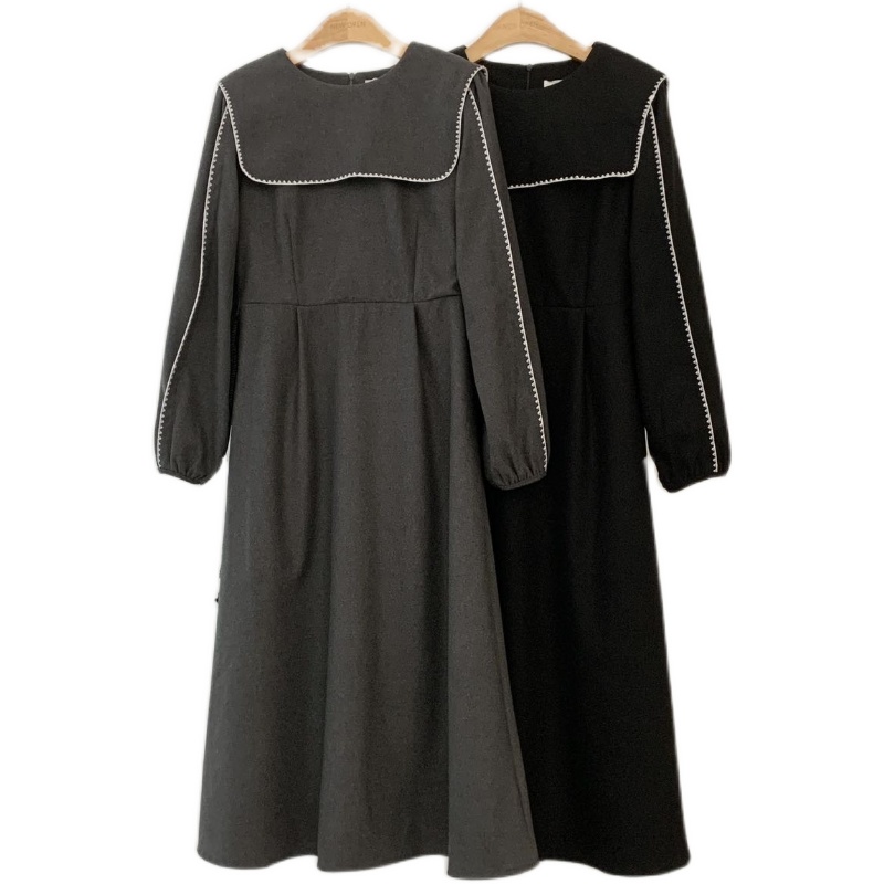 NEW OPEN赫本风连衣裙女秋冬韩版长袖针织过膝收腰显瘦系带中长裙