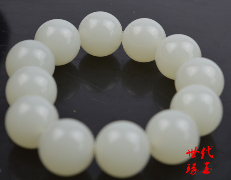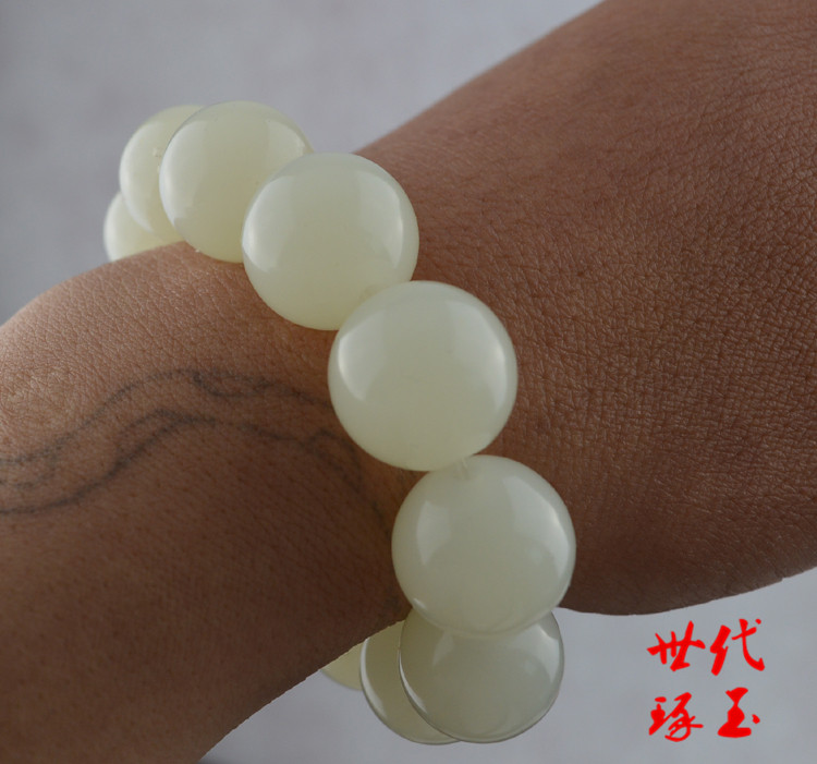 新疆玉18mm和田玉籽料玉手链羊脂玉白玉原石手串大圆珠珠子手串