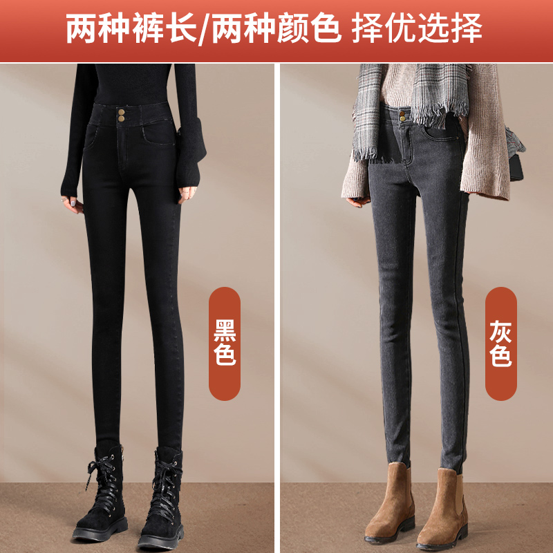 烟灰色高腰牛仔裤女春季春季2025年新款修身显瘦加绒小脚铅笔裤子