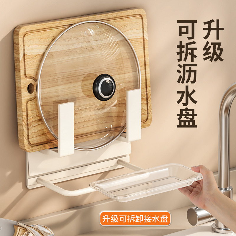 厨房锅盖架太空铝免打孔壁挂式沥水置物架砧板菜板案板奶油风1763
