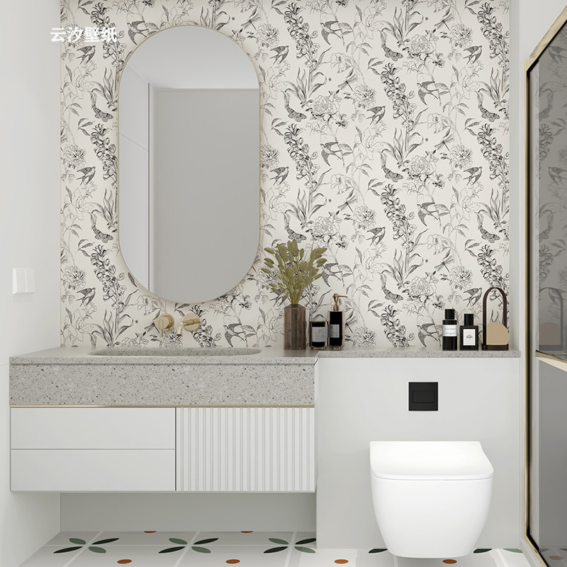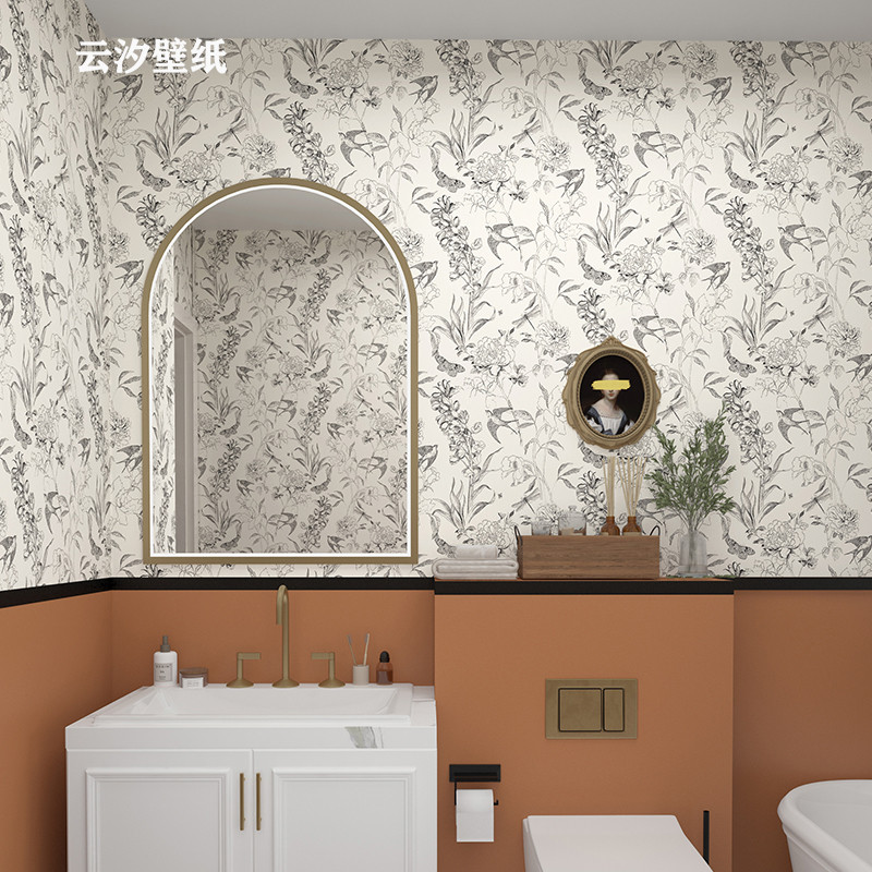卫生间墙纸自粘法式燕子浴室防水防潮厕所贴纸厨房专用瓷砖壁纸贴