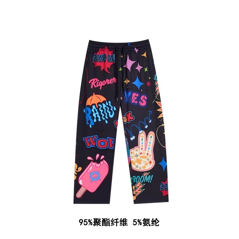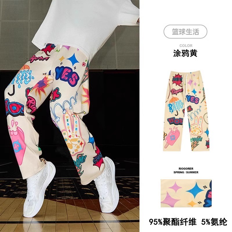 准者涂鸦平裤子运动长裤男春季新款花口美式篮球直筒裤休新款