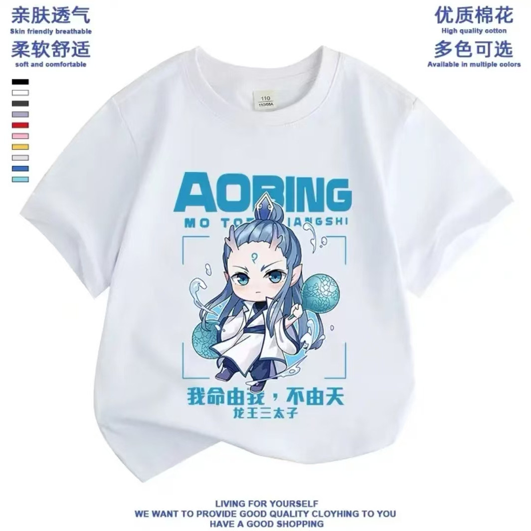 【亮灯款】哪吒敖丙纯棉短袖T恤夏季动漫哪咤动漫周边衣服儿童新