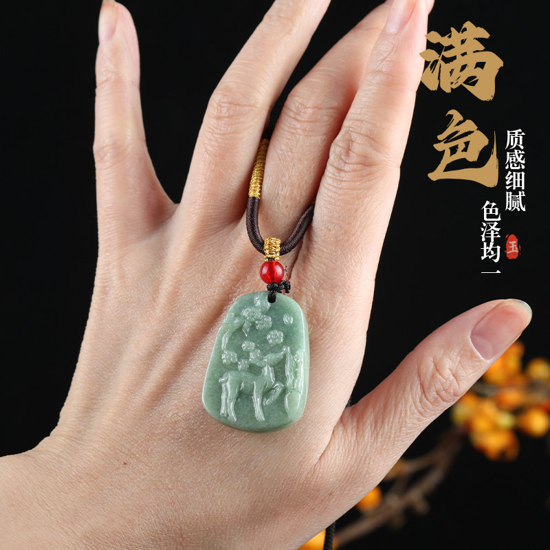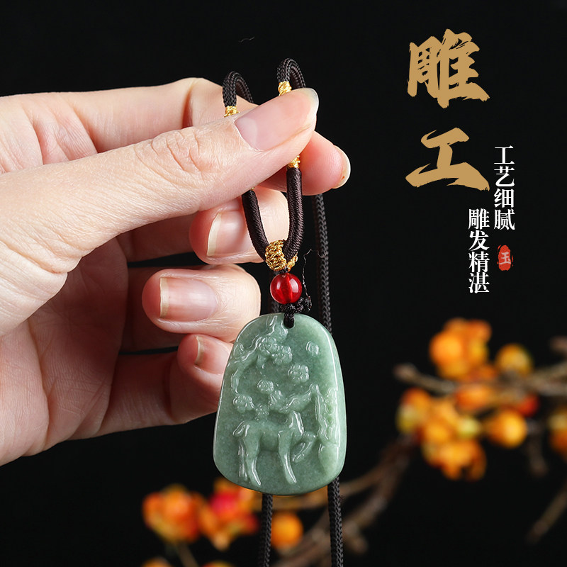 唐今玉天然A货翡翠一路有你吊坠小鹿冰种玉石挂件花件男女款玉器