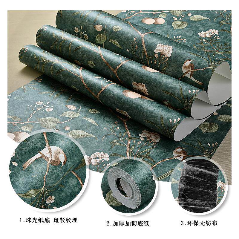 自贴墙纸自粘家用纺布墙贴纸卧室温馨房间美式田园复古花鸟