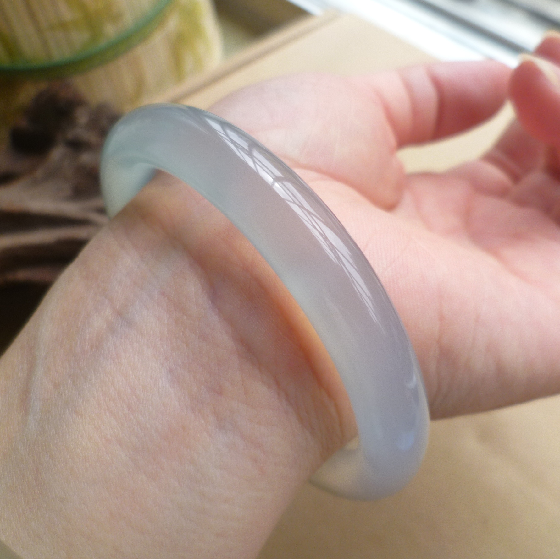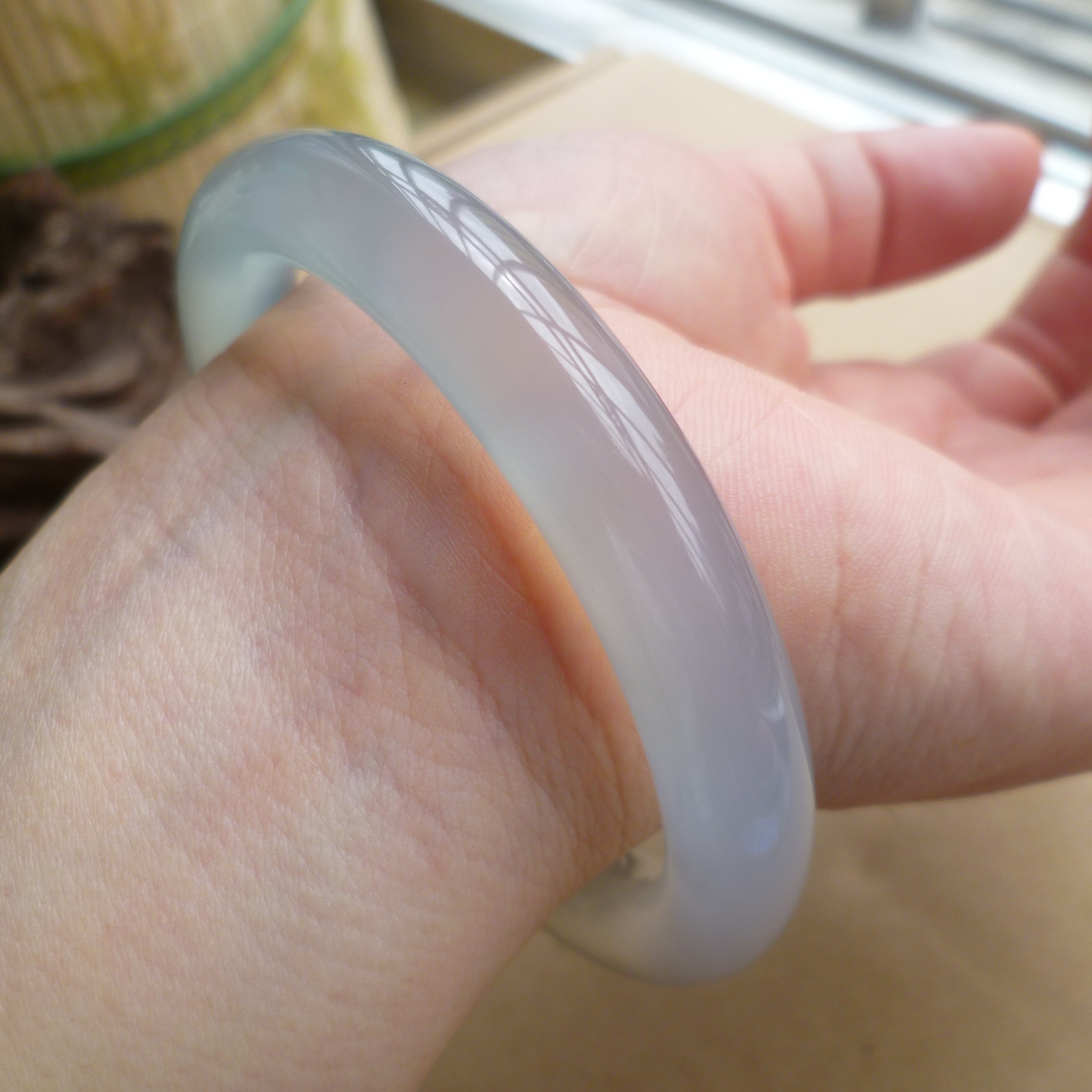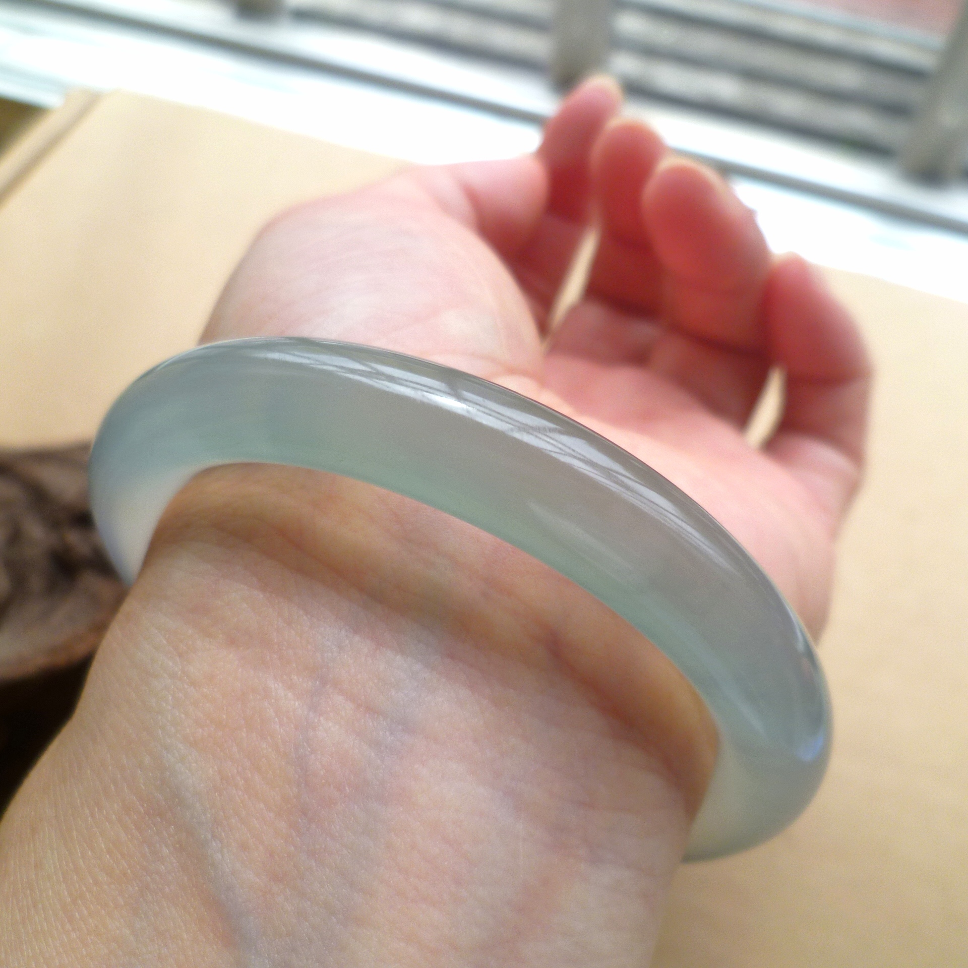 天然玛瑙玉石/淡绿色53MM圆条手镯 送证书 特价
