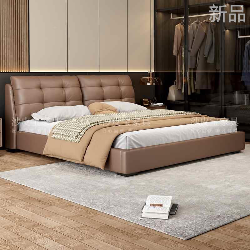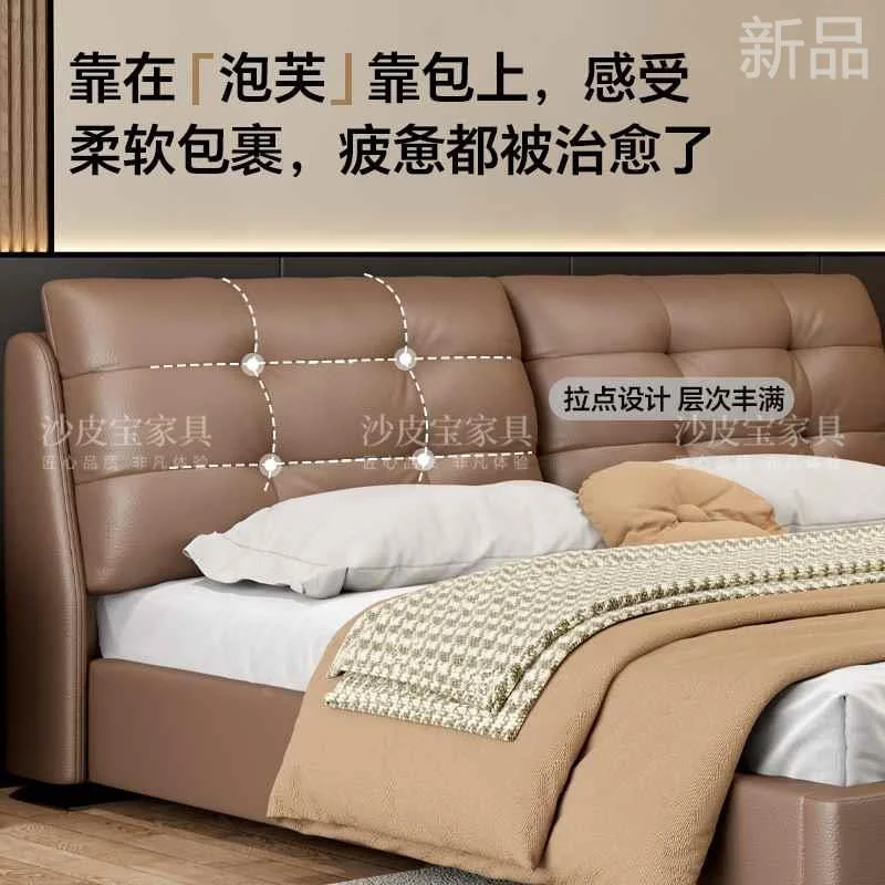 现代简约真皮床北欧1.8m双人床高箱储物床小户型主卧室婚床实新品