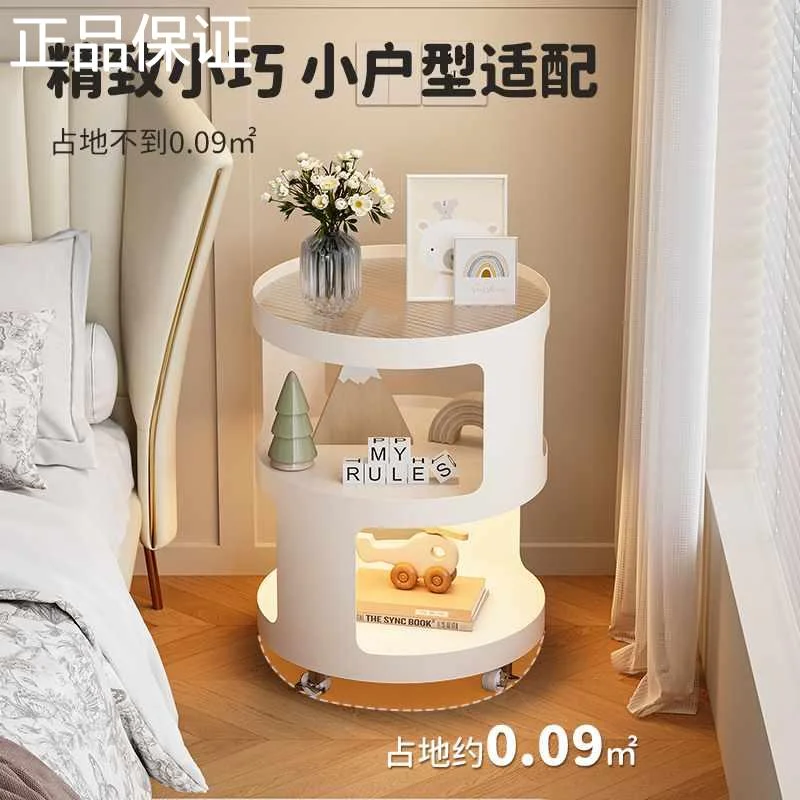 沙发边几可移动创意小圆茶几奶油客厅风茶桌铁艺床头柜推车新品