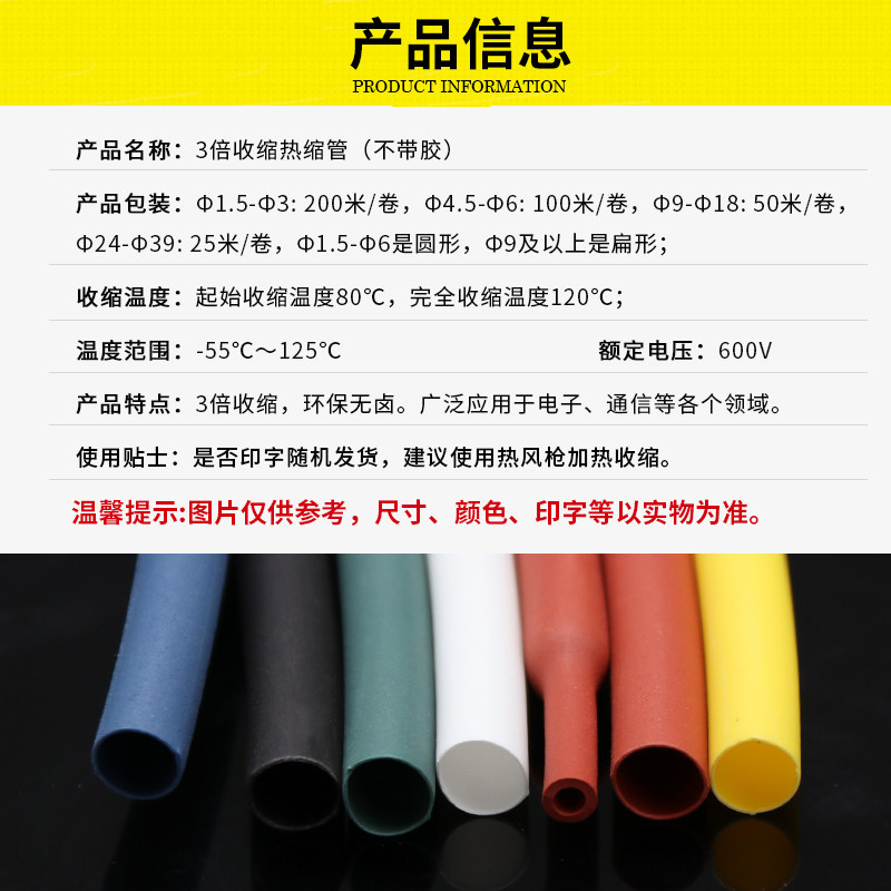 三倍不带胶热缩管Φ1.5~50mm多色 三倍收缩数据线电线修复保护