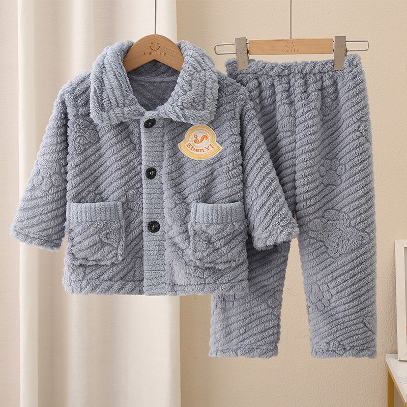 2024秋季男女儿童法兰绒睡衣冬季宝宝长袖拉链外套长裤家居服套装
