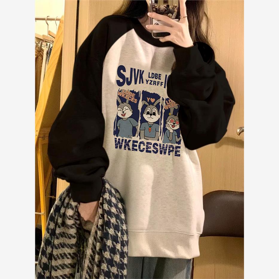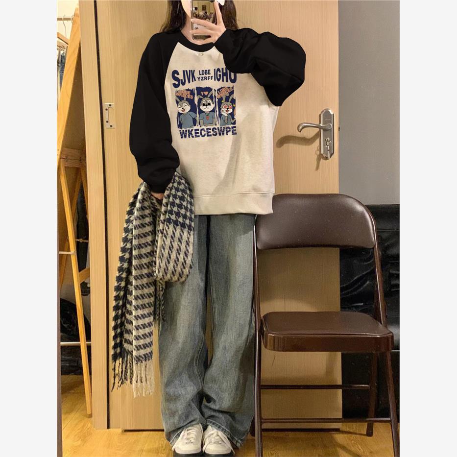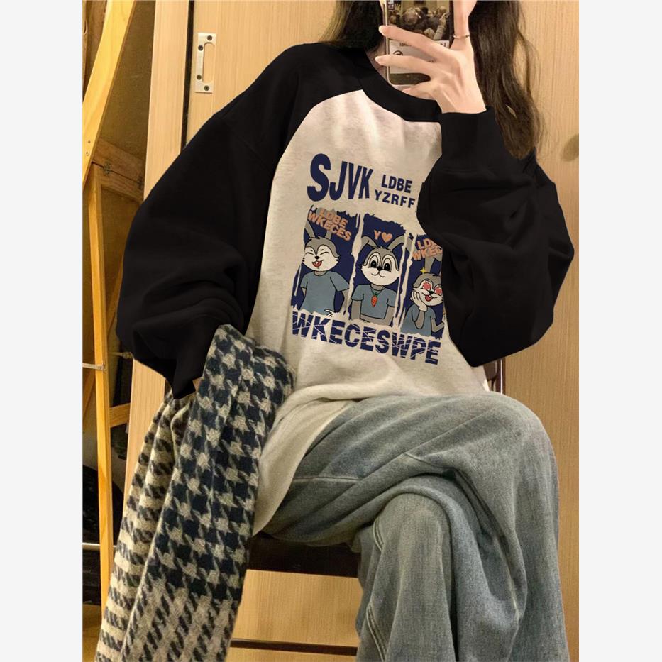 港味chic圆领卫衣女春秋冬插肩袖小众设计感宽松美式复古无帽上衣