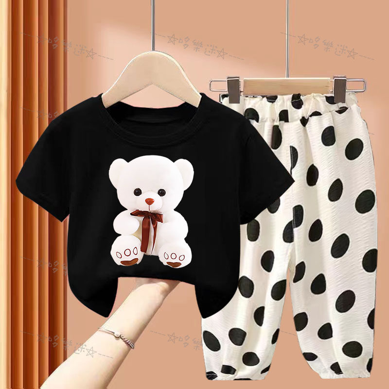男童女童夏装短袖纯棉T恤2023夏季新款套装宝宝帅气童装两件套潮