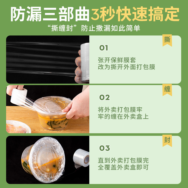 pe外卖封口缠绕膜小卷打包餐盒防漏保鲜膜食级缠绕拉伸密封口膜