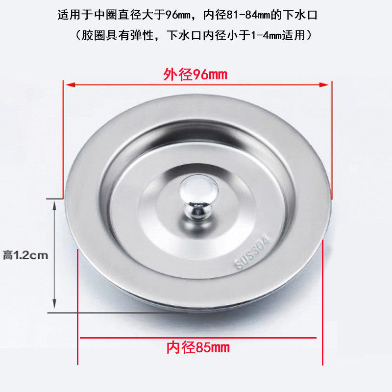 新款td6182不锈钢水槽封水洗菜盆87mm厨房下水器堵水塞子94盖子碗