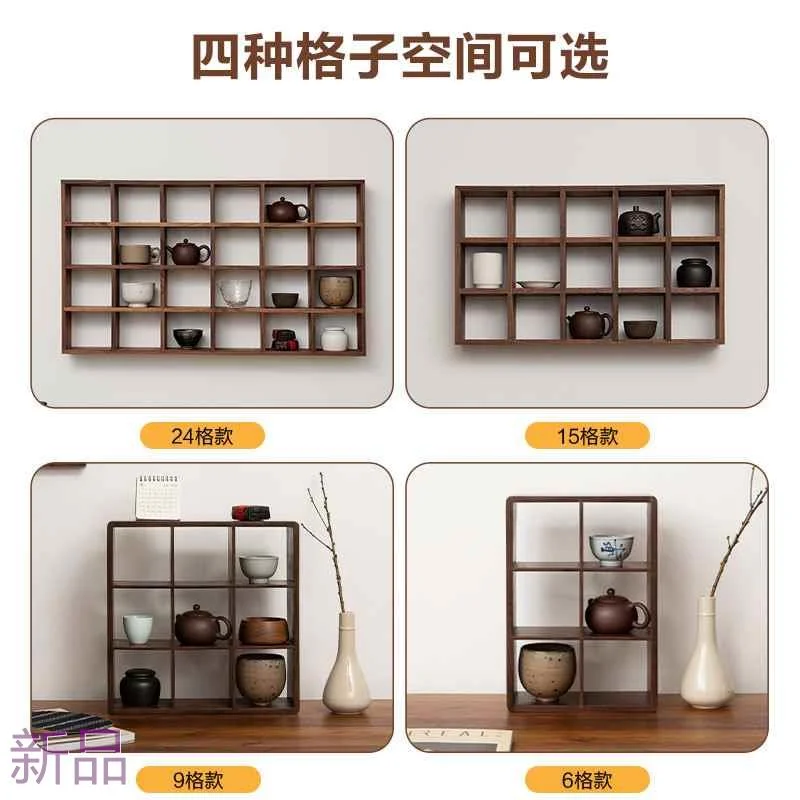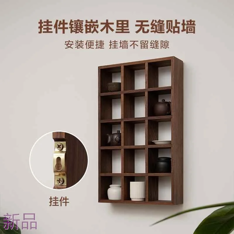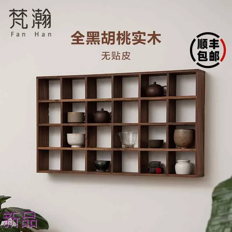 梵瀚黑胡桃木挂墙多宝阁茶杯摆件收纳置物架新中式实木桌面博新品