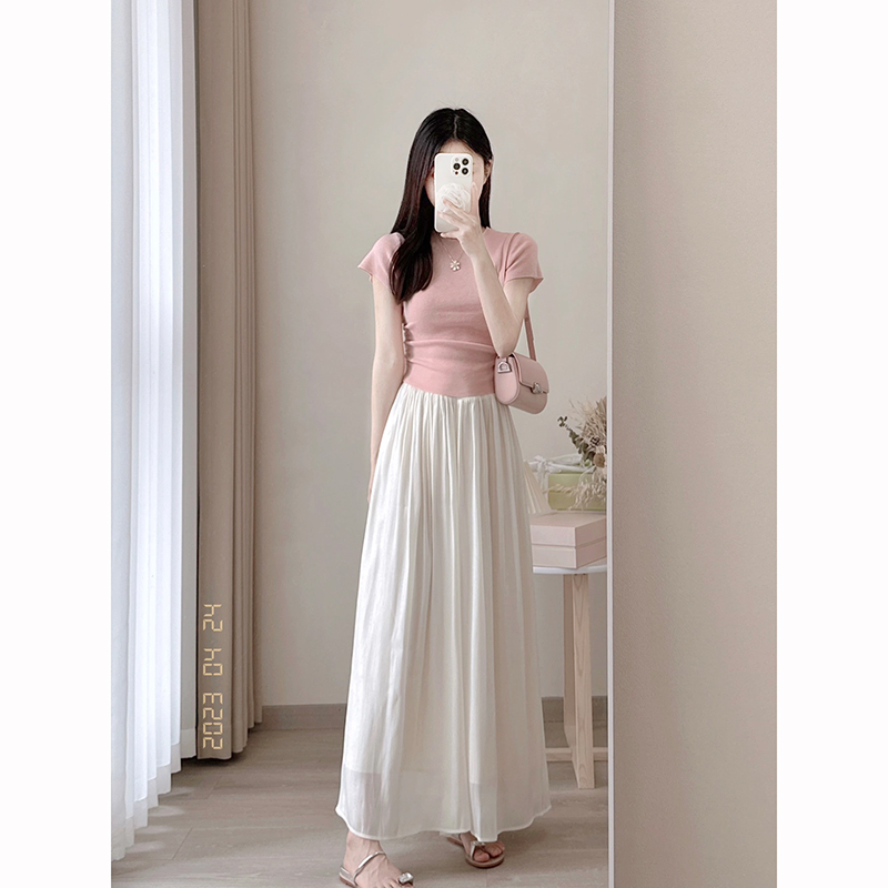 2025新款法式高级感仙女气质长裙连衣裙子半身裙粉色两件套装女夏