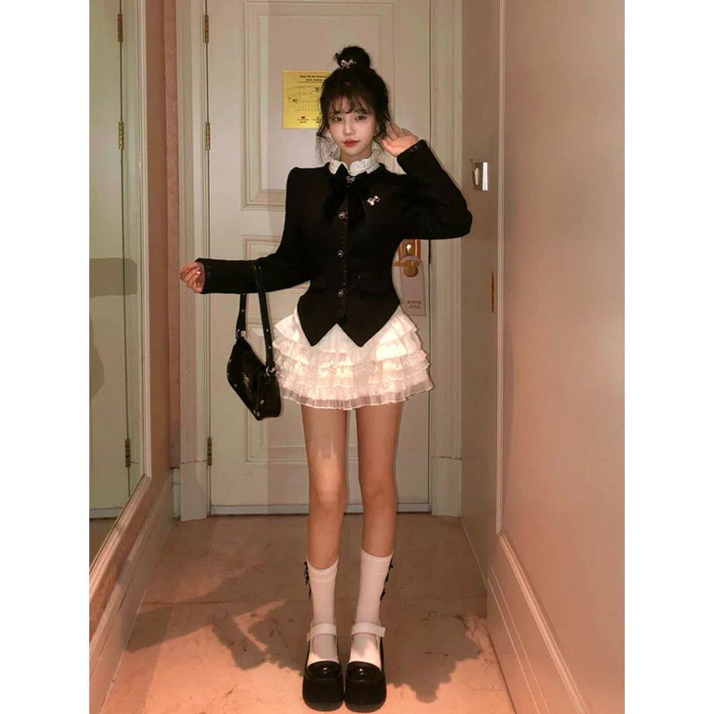 绯闻女主 冬装小香风气质小众设计感显瘦长袖外套蛋糕裙千金套装
