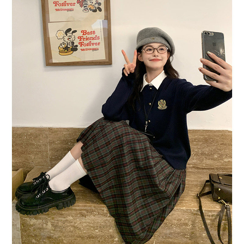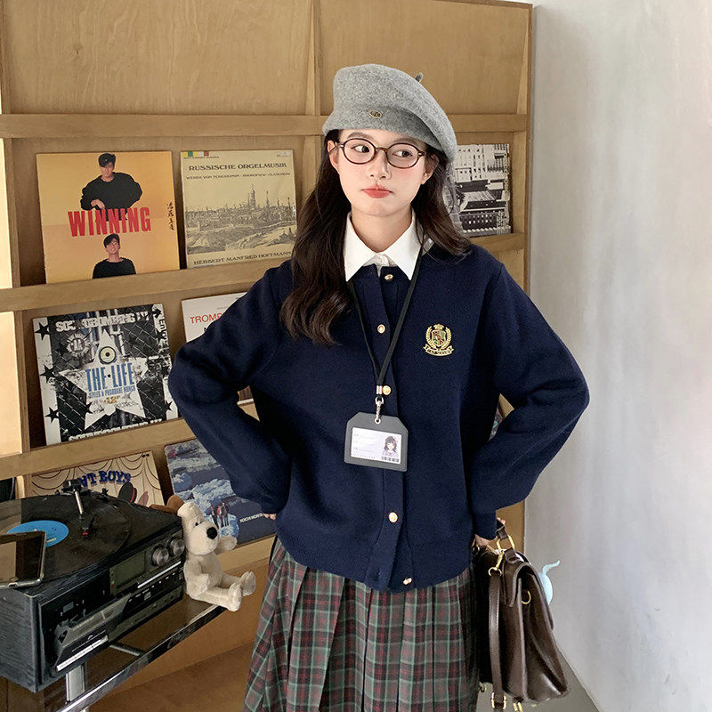 东京岁时记jk早春穿搭秋冬藏青色针织衫显瘦毛衣外套女小个子上衣