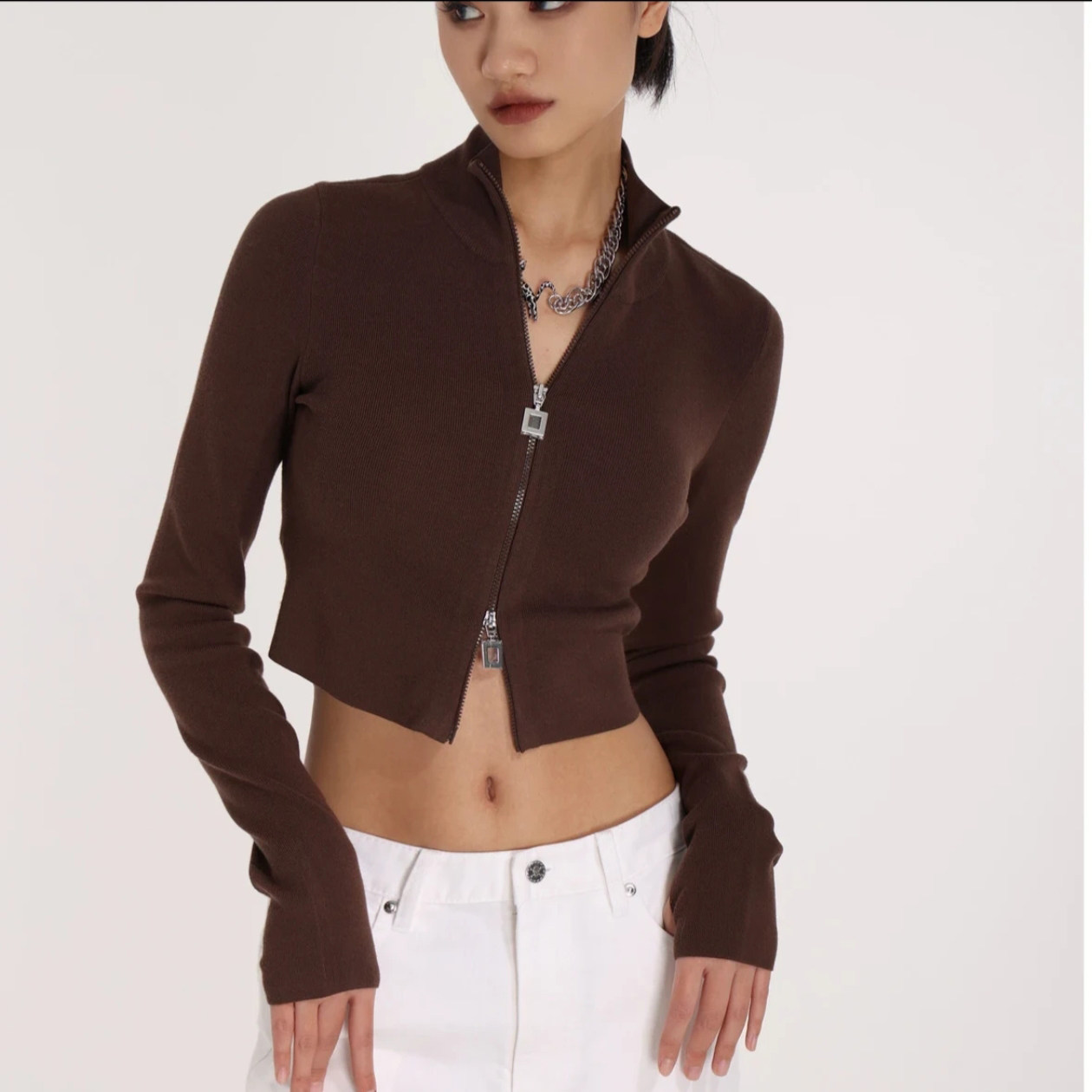阿玛施商场同款26春百搭潮立领长袖女时尚百搭气质衣服针织短外套