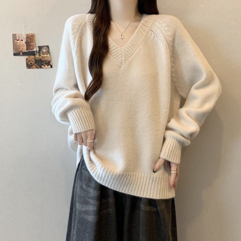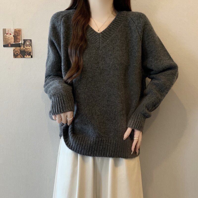 V领正肩针织衫毛衣女2025新款冬大码胖mm巨好看高级感打底衫上衣