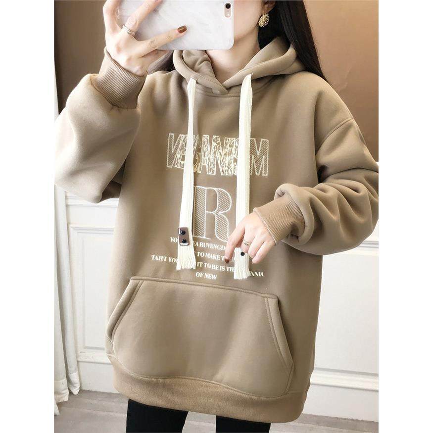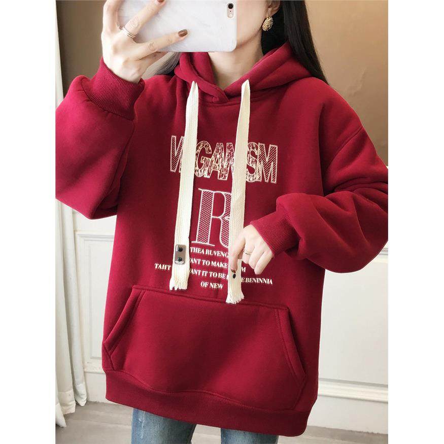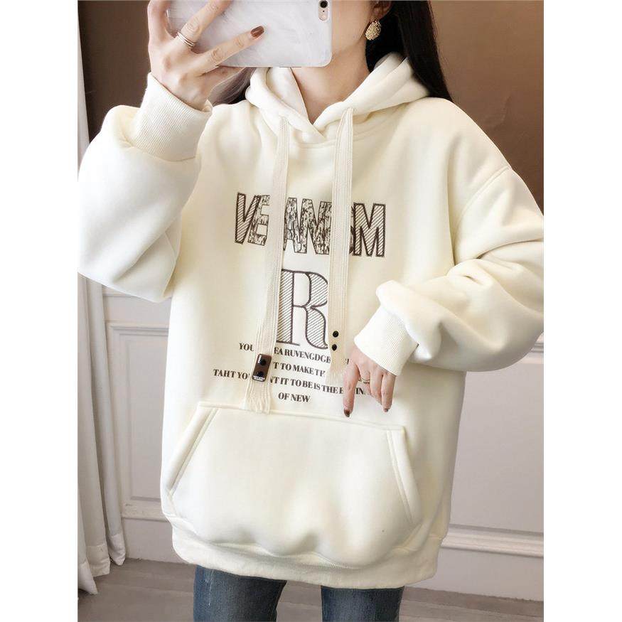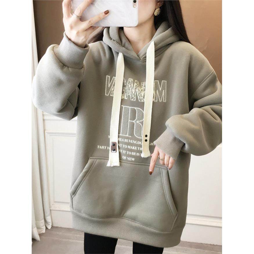 冬季连帽加绒加厚卫衣女2024新款爆款一体绒秋冬学生羊羔绒外套冬