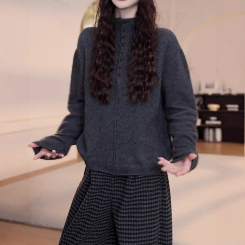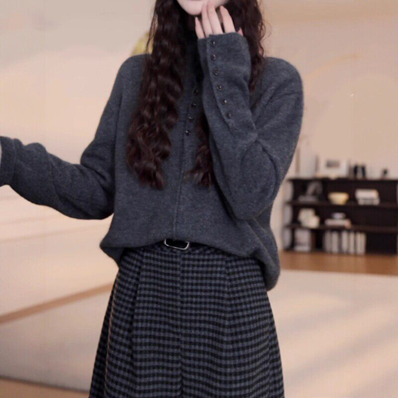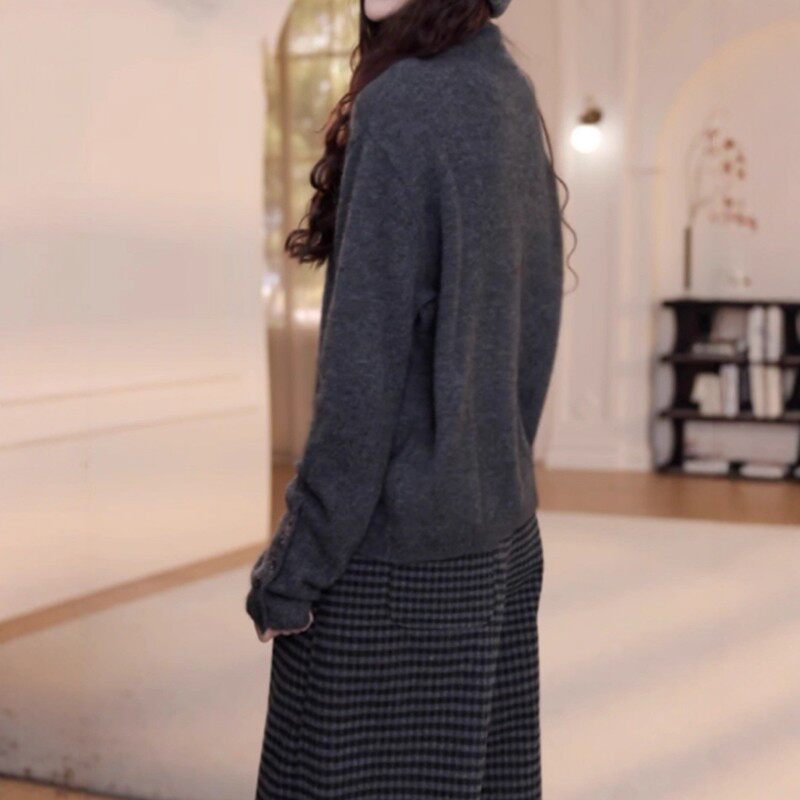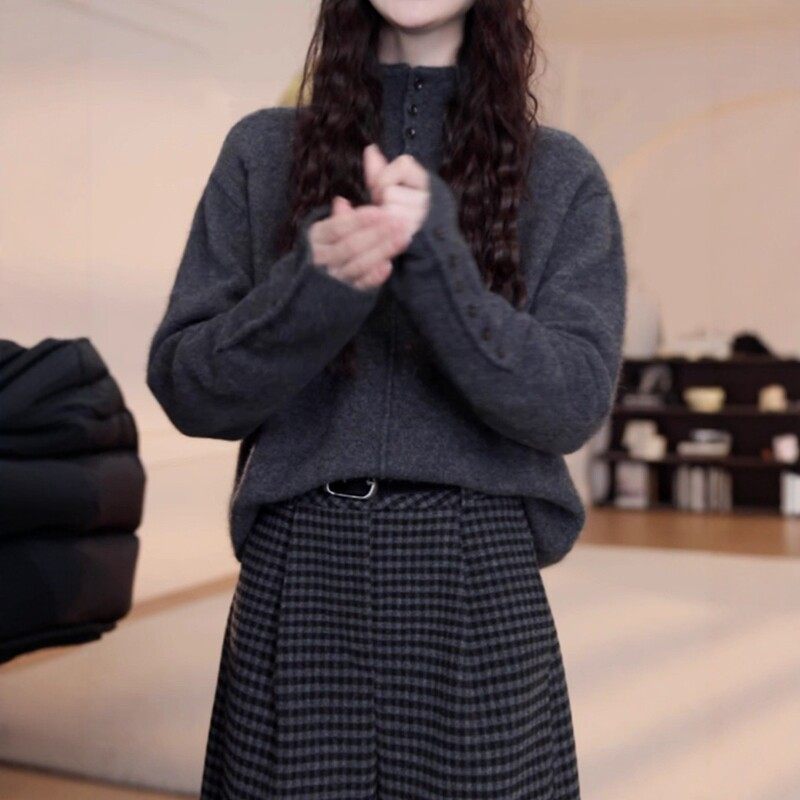高级感半高领针织衫女秋冬季新款大码胖MM显瘦宽松设计感长袖毛衣