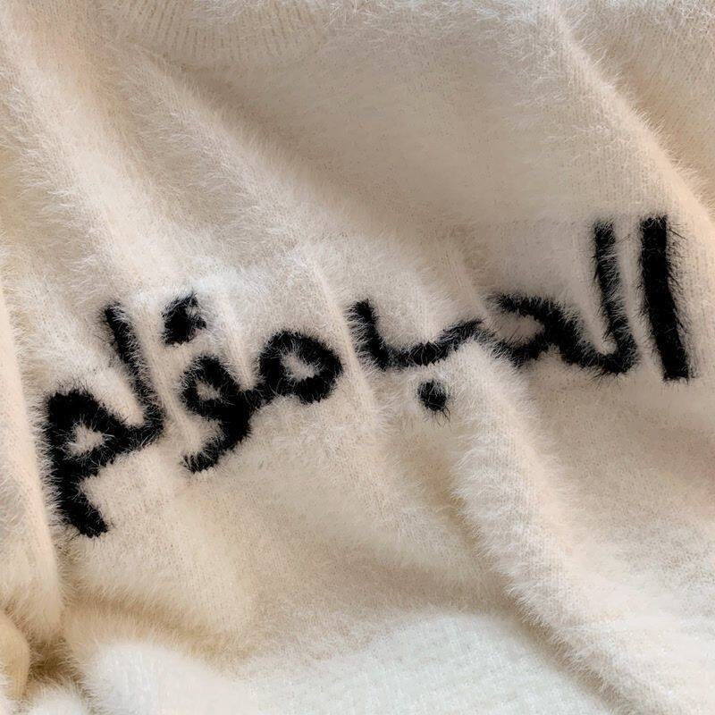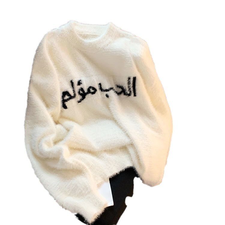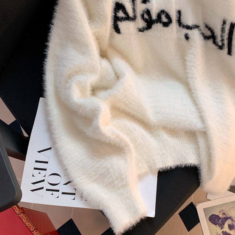 白色毛衣女秋冬2024年宽松休闲情侣长袖vintage圆领上衣ins潮街头