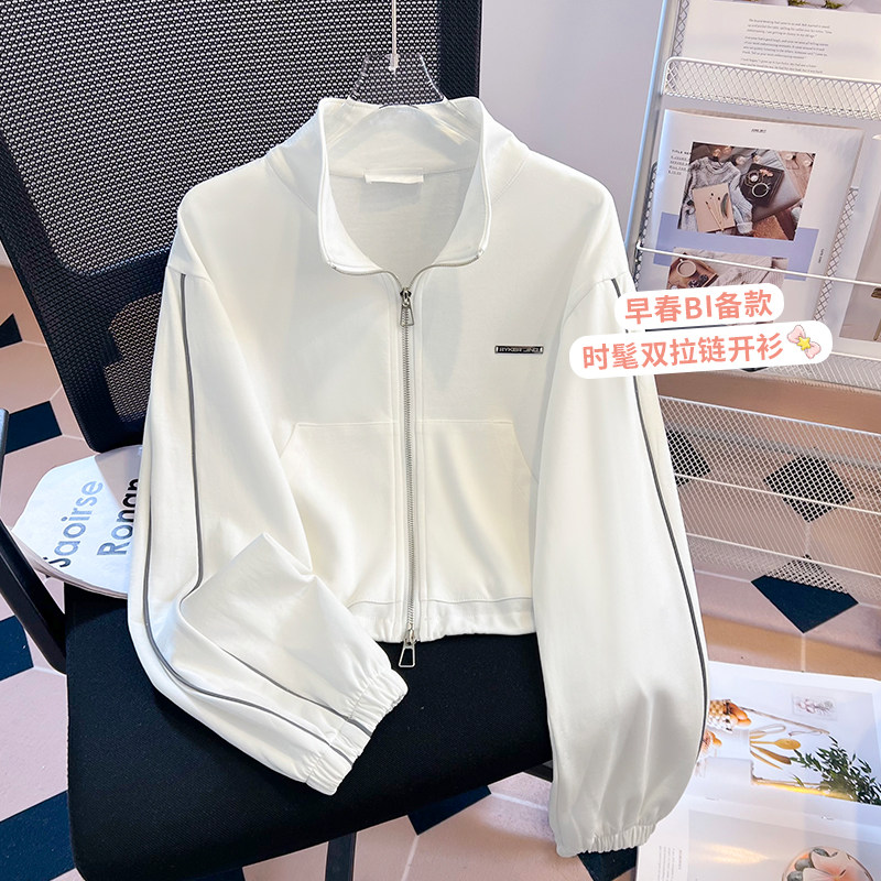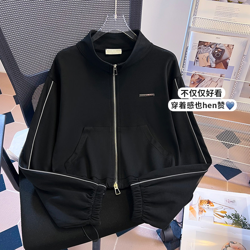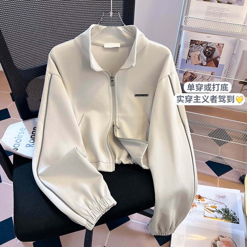美式辣妹休闲小个子短款外套女2025早秋立领长袖上衣拉链开衫