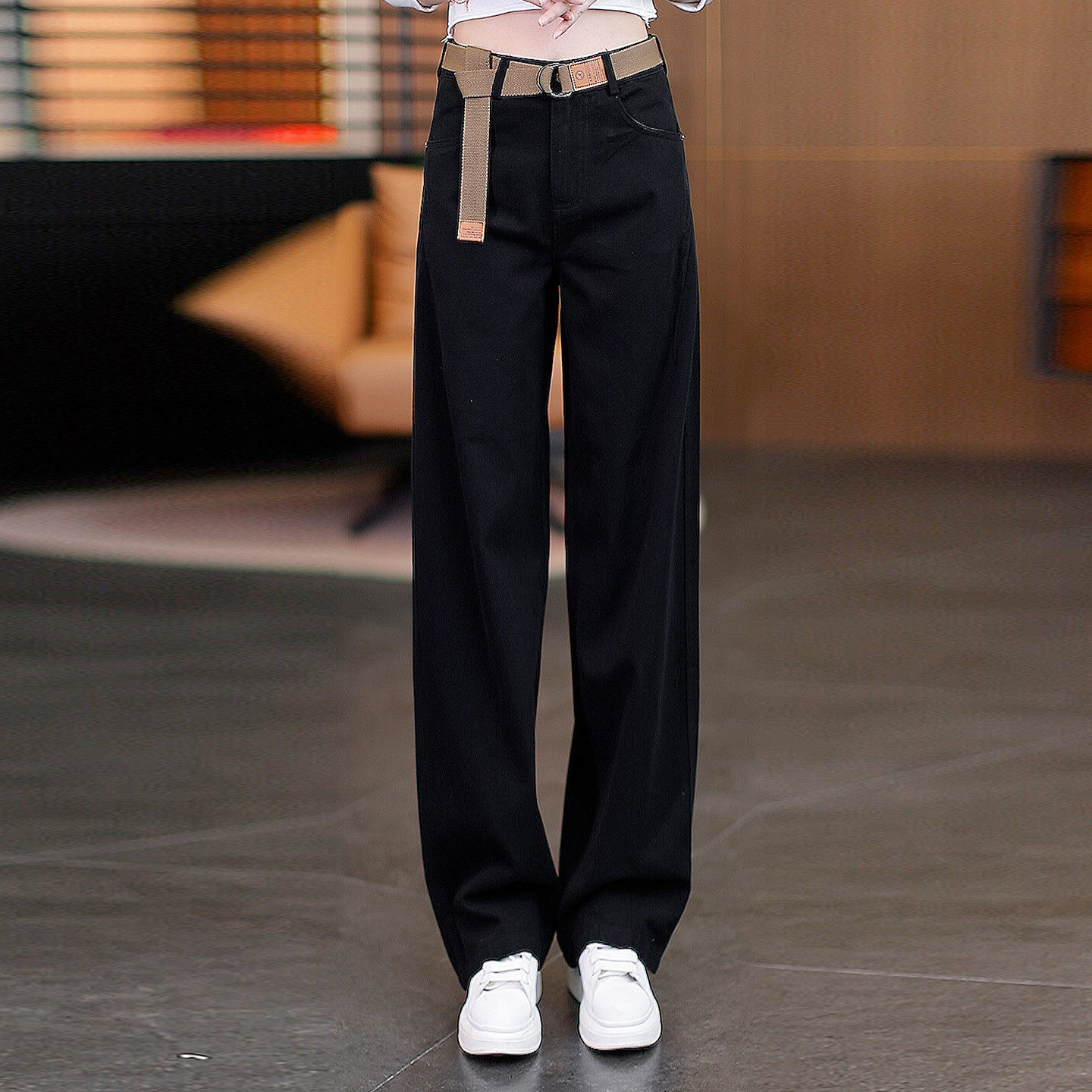 时尚窄版阔腿裤女2026春秋新款高腰显瘦牛仔裤宽松垂感直筒休闲裤