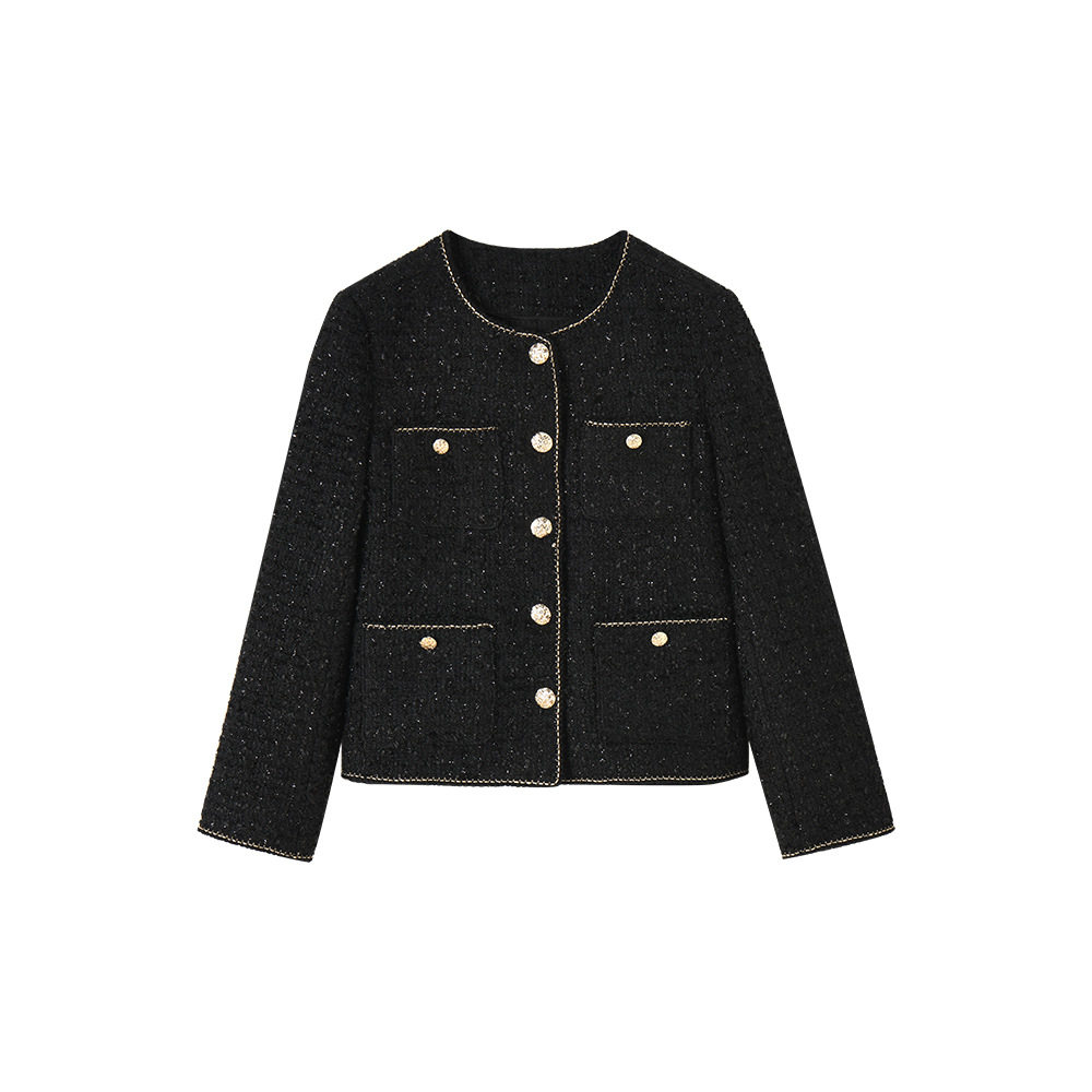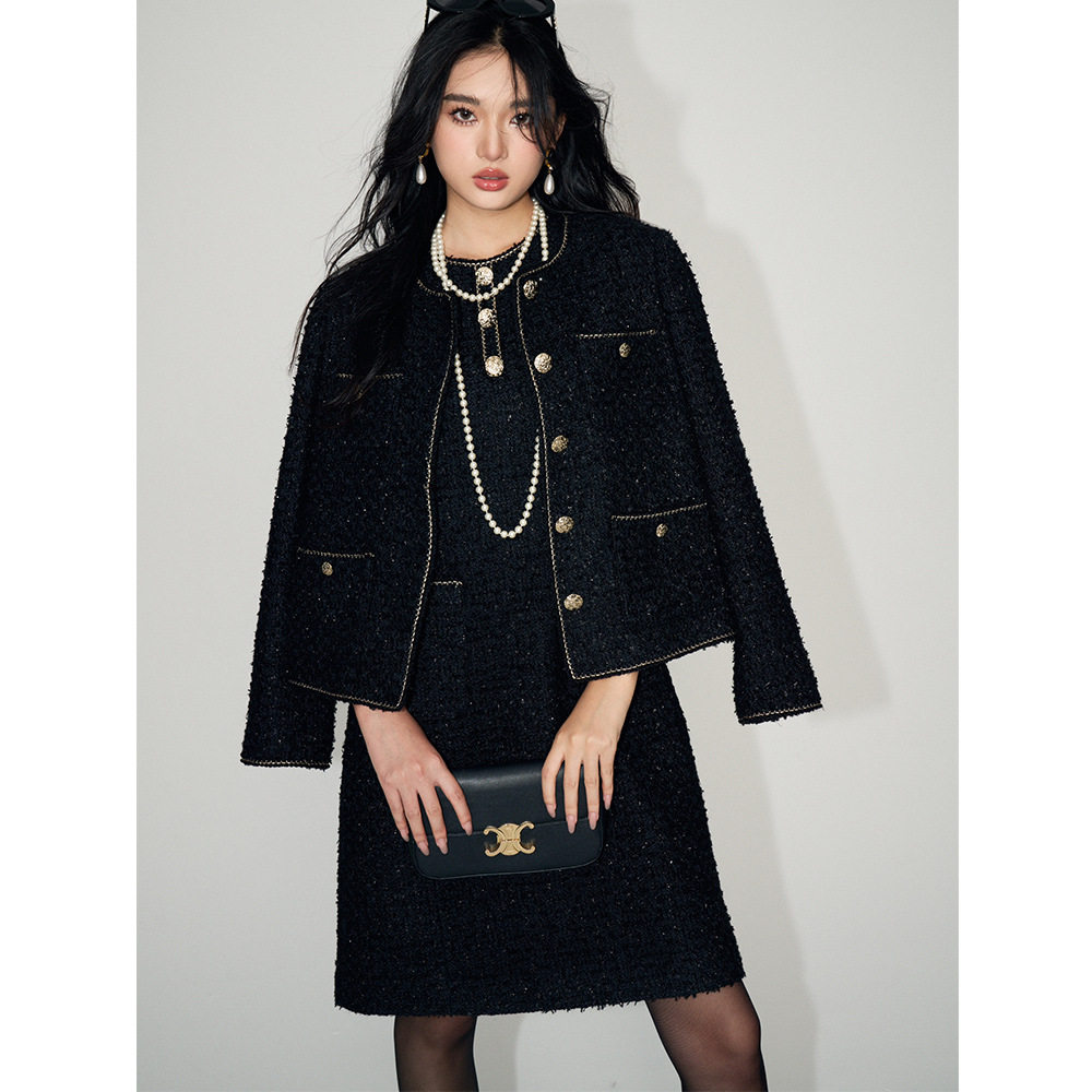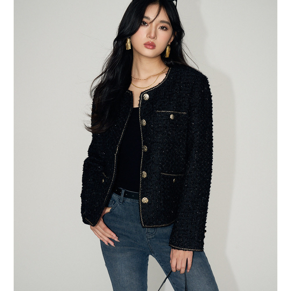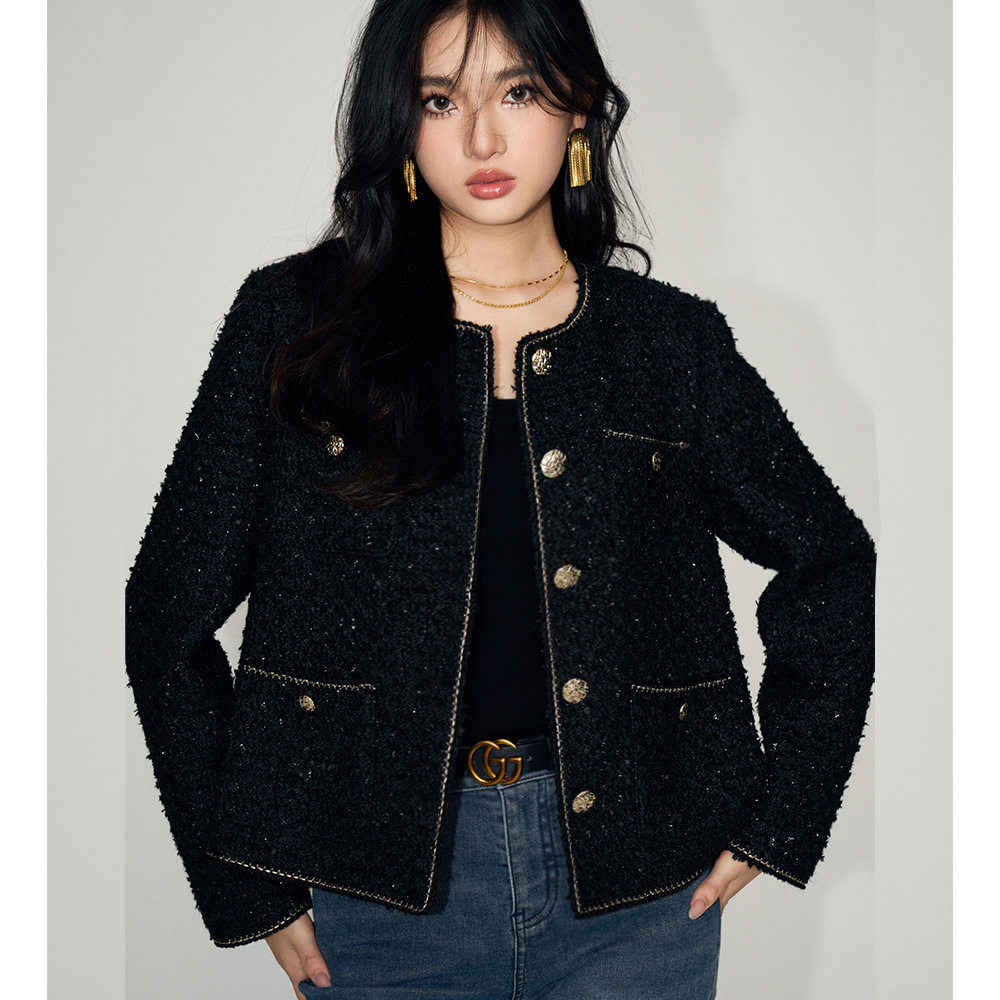 【盛都】26春新法式高级感小香风亮丝编织粗花呢短款羊毛上衣外套