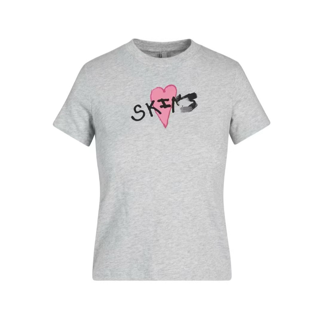 情人节限定新款skims同款爱心印花圆领修身显瘦棉质舒适短袖T恤
